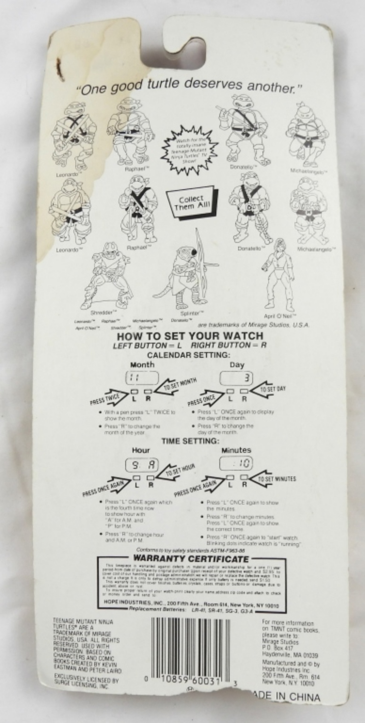 DIGITAL FLIP WATCH in ORIGINAL PACKAGE 1988/89 – MICHAELANGELO