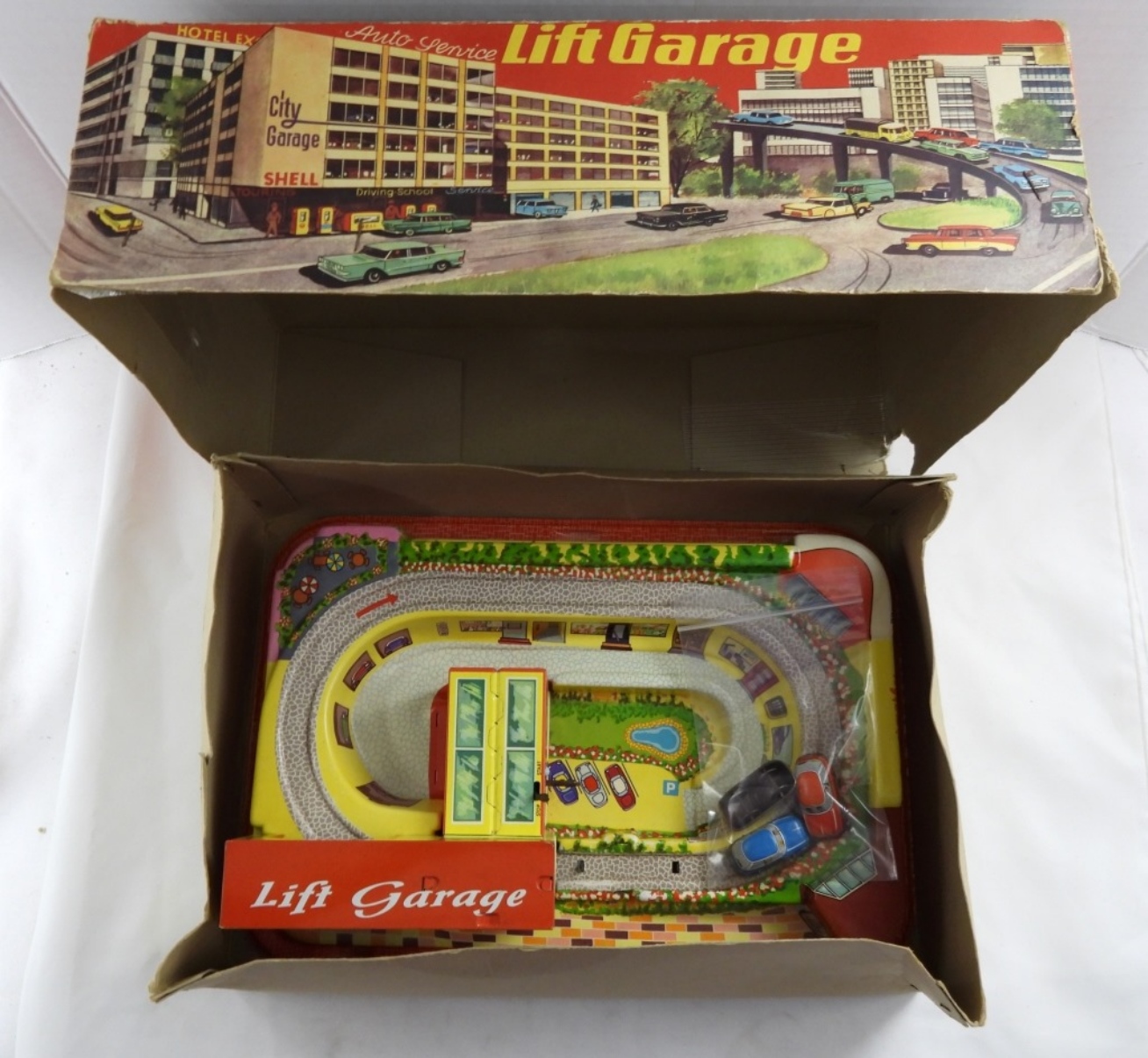 #308 Shell Oil TIN LITHO – WORKING CONDITION – 3 CARS in ORIGINAL BOX has been taped inside box