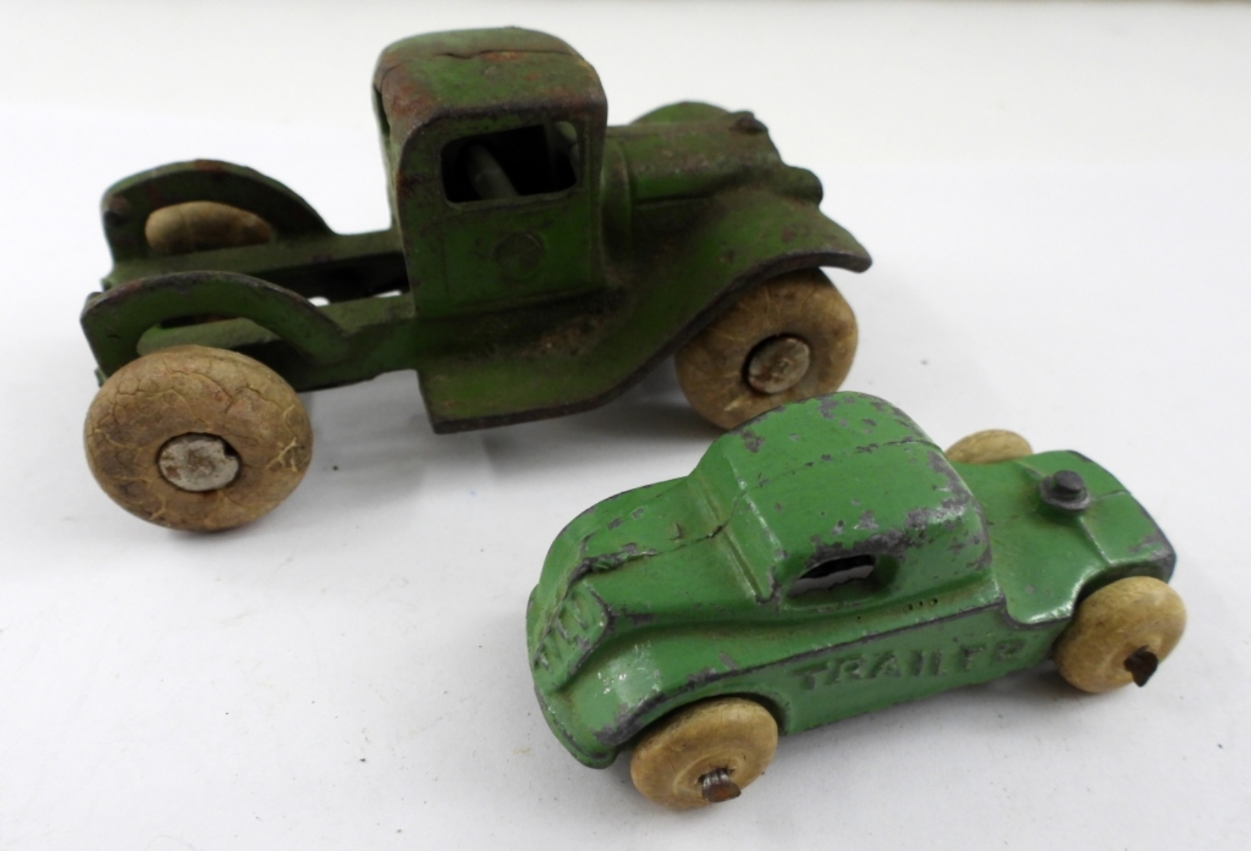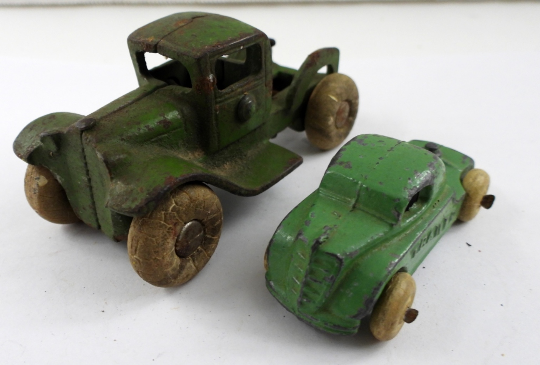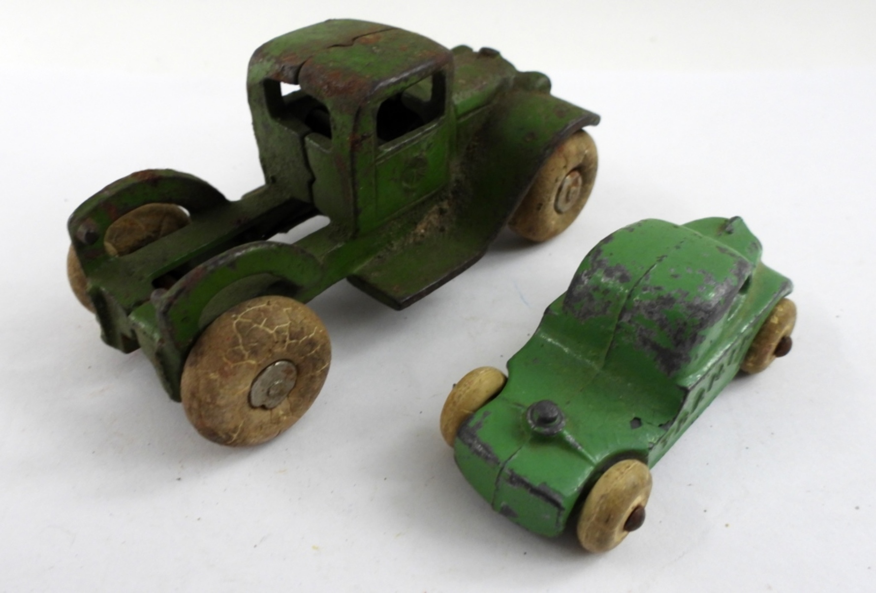 plus SMALL MINI GREEN TRUCK – BOTH WITH RUBBER WHEELS