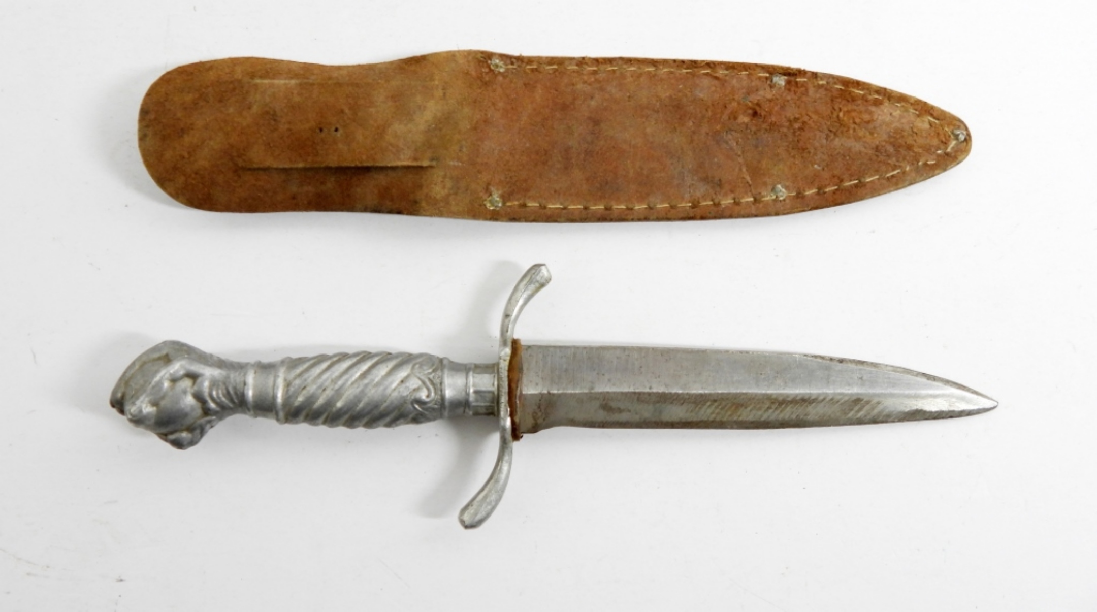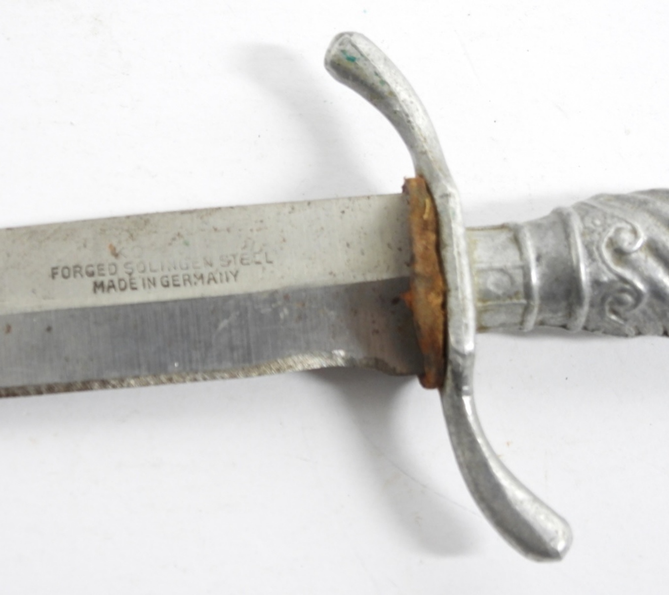 VINTAGE GERMAN DAGGER- FORGED SOLINGEN STEEL MADE IN GERMANY- DOES HAVE A LEATHER CARRYING CASE THAT IS NOT ORIGINAL TO THIS DAGGER- IN GOOD CONDITION- DAGGER AND THE CARRYING CASE BOTH SHOW WEAR-PREOWNED.