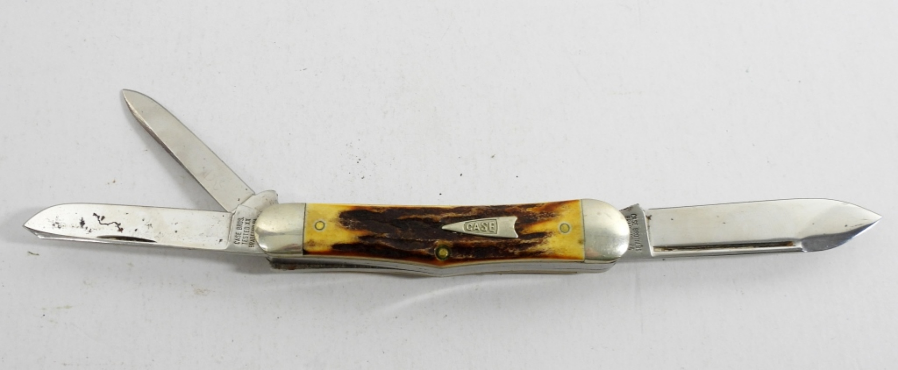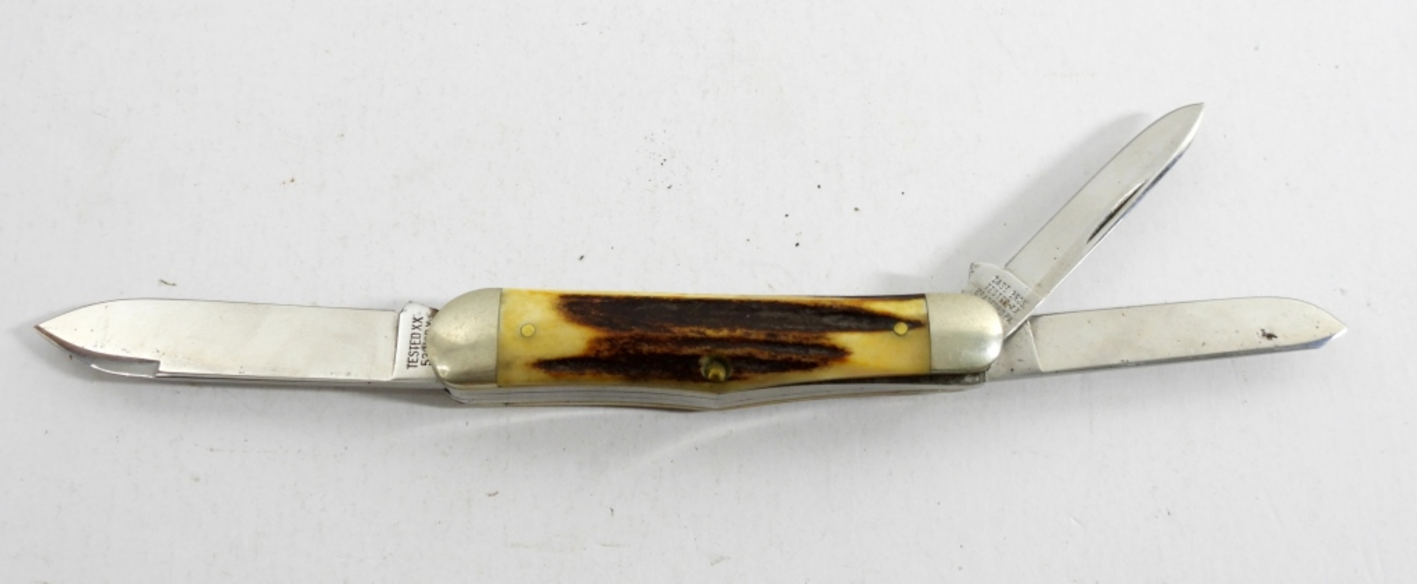 THREE BLADE KNIFE – STAG HANDLE – PRE OWNED VERY NICE CONDITION