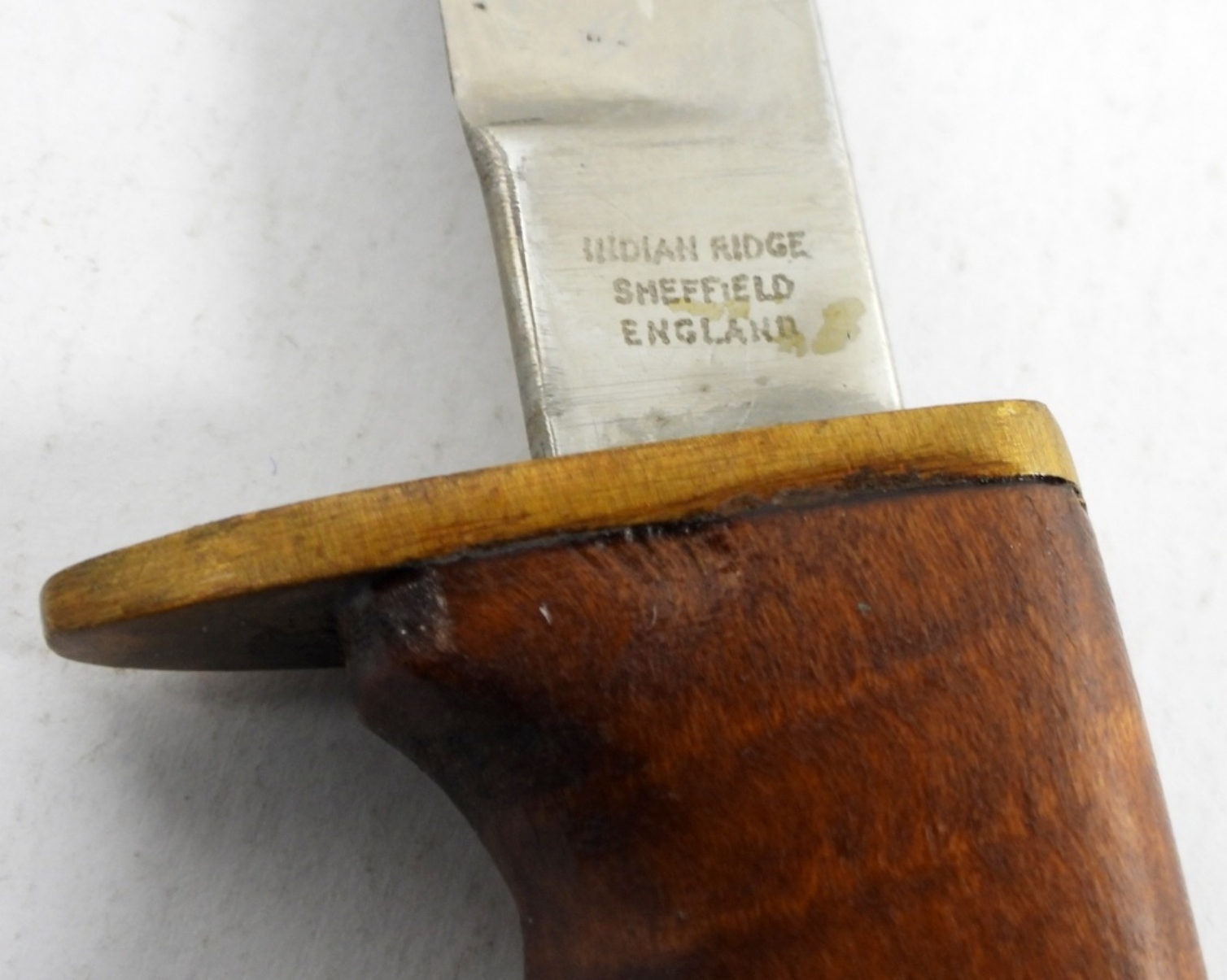 VINTAGE INDIAN RIDGE SHEFFIELD ENGLAND FIXED KNIFE, 5″ BLADE, GOOD CONDITION, WOODEN HANDLE