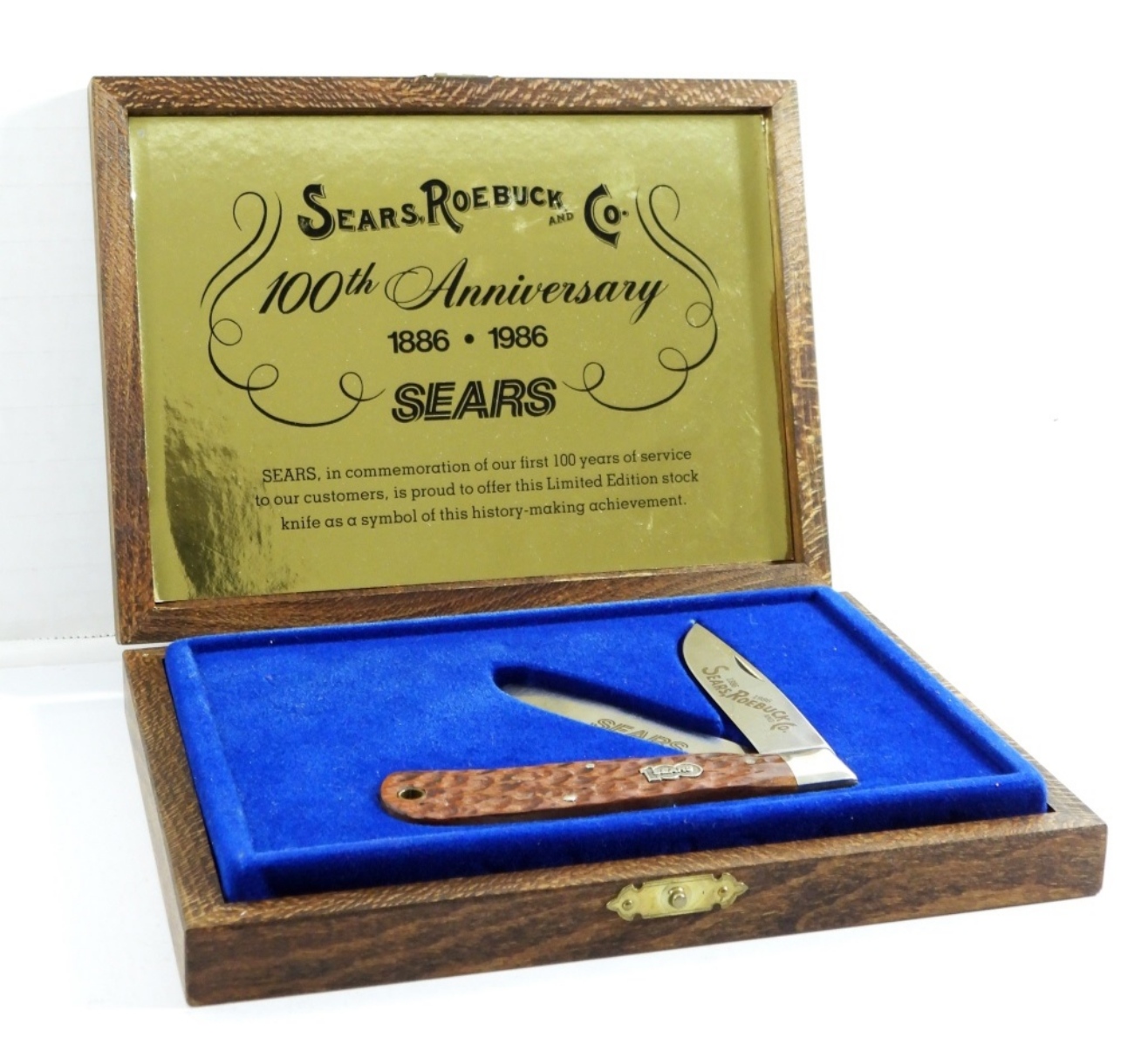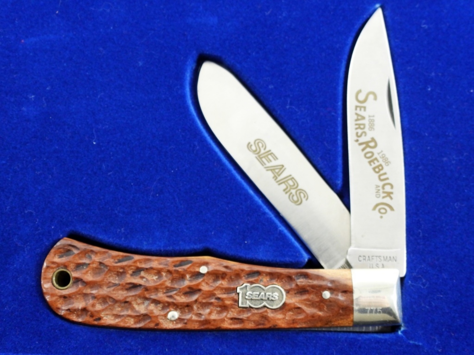 SEARS 100TH ANNIVERSAY CRAFTSMAN 95113 KNIFE IN BOX (BOX HAS BROKEN HINGE AND CLOSE), KNIFE IN GREAT CONDITION