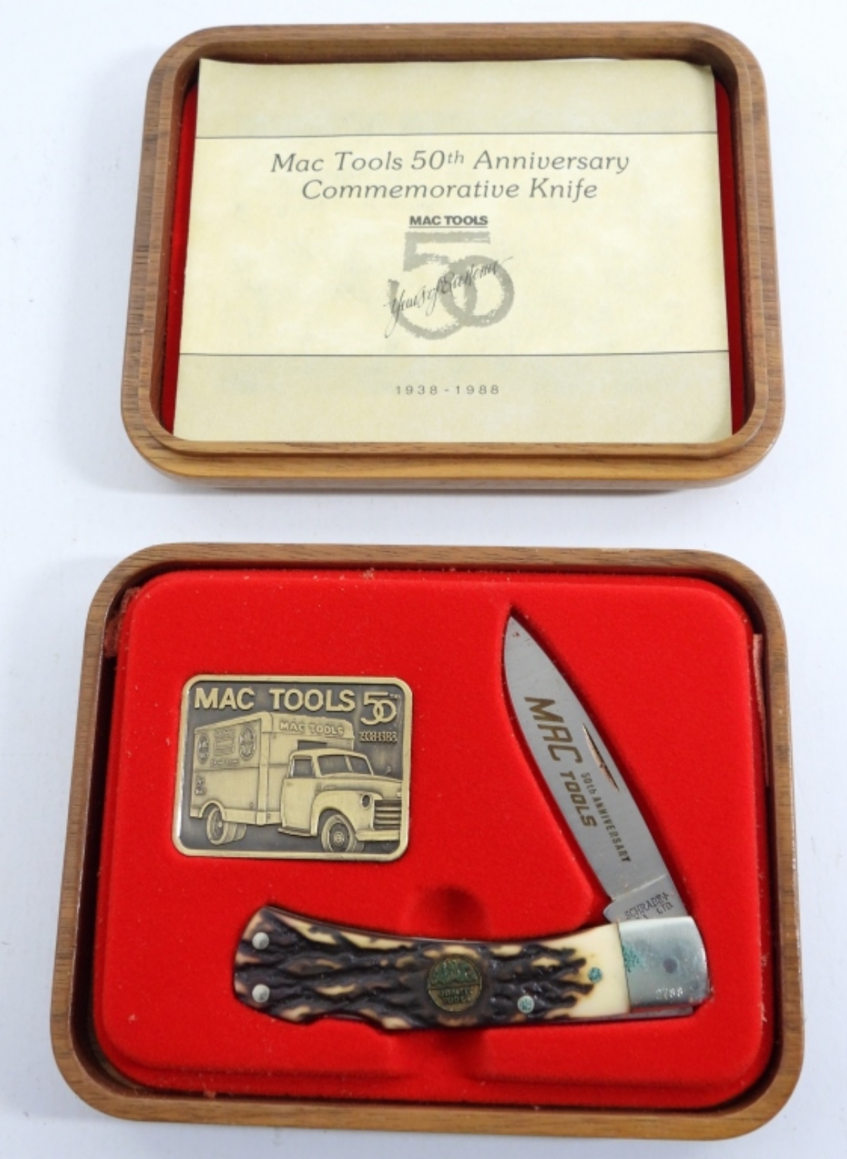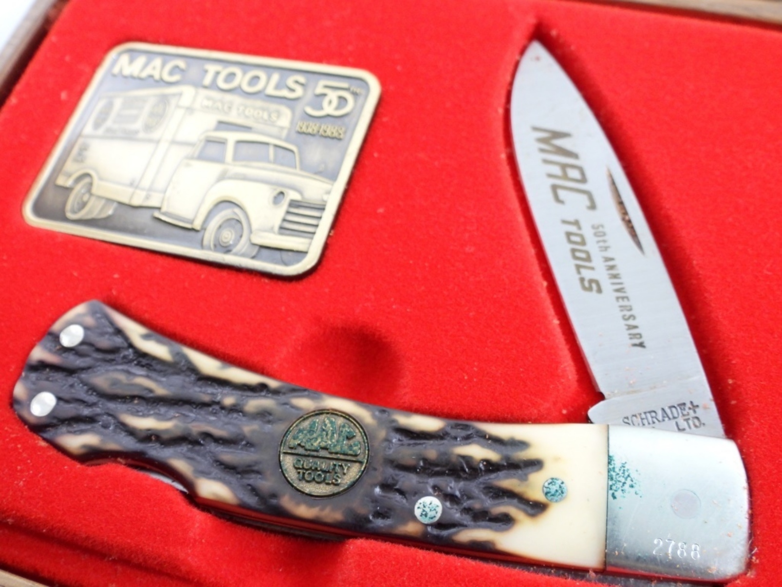 MAC TOOLS 50 YEARS ANNIVERSARY LOCKBACK KNIFE, SCHRADER 2788, IN GOOD CONDITION, IN ORIGINAL BOX.