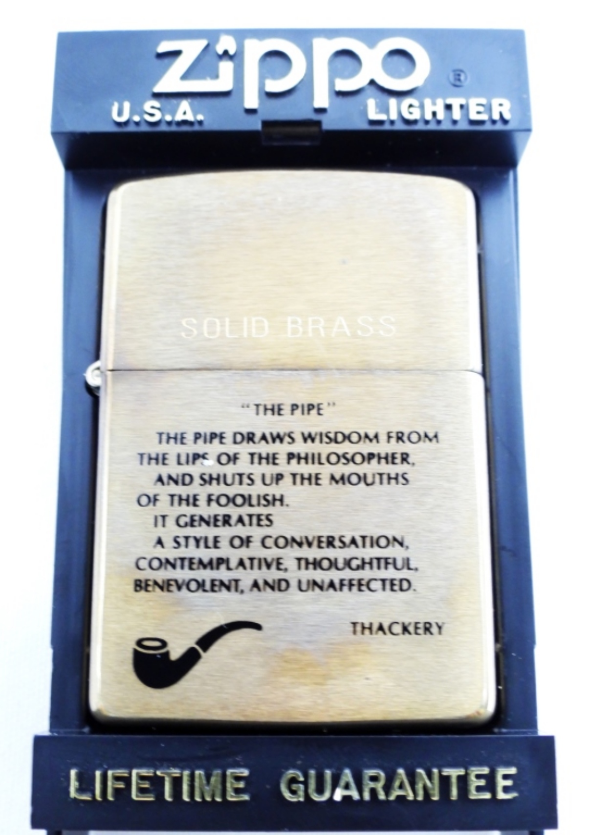 1994 BRASS ZIPPO- “THE PIPE” POEM ON THE FRONT OF THE ZIPPO- UNFIRED- SEALED- IN GOOD CONDITION-PREOWNED.