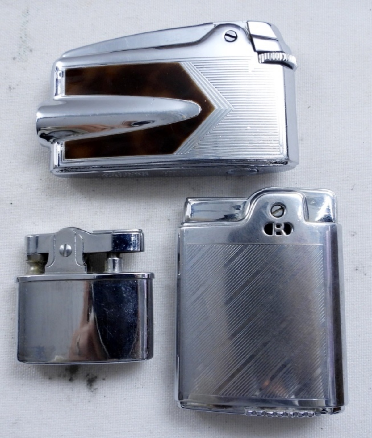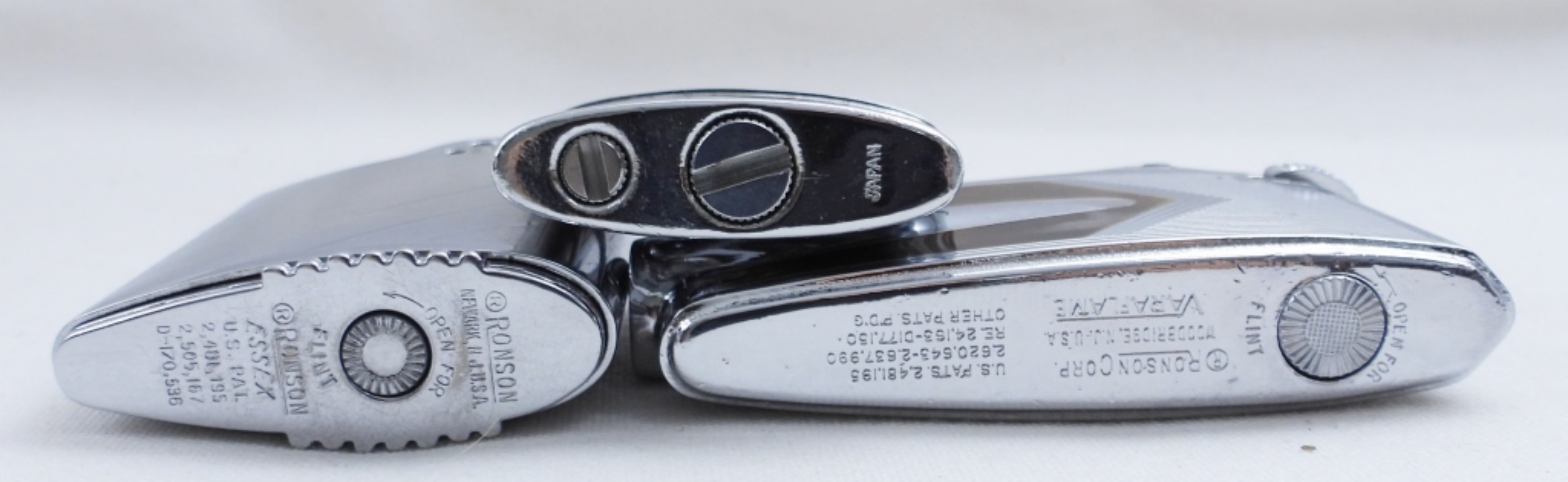 2 VINTAGE RONSON LIGHTERS, BOTH FIRED, ONE COMES WITH A PURPLE CARRYING BAG & REPLACEMENT KIT, THE OTHER ONE COMES WITH THE RONSON BOX, PAPERWORK & BRUSH.