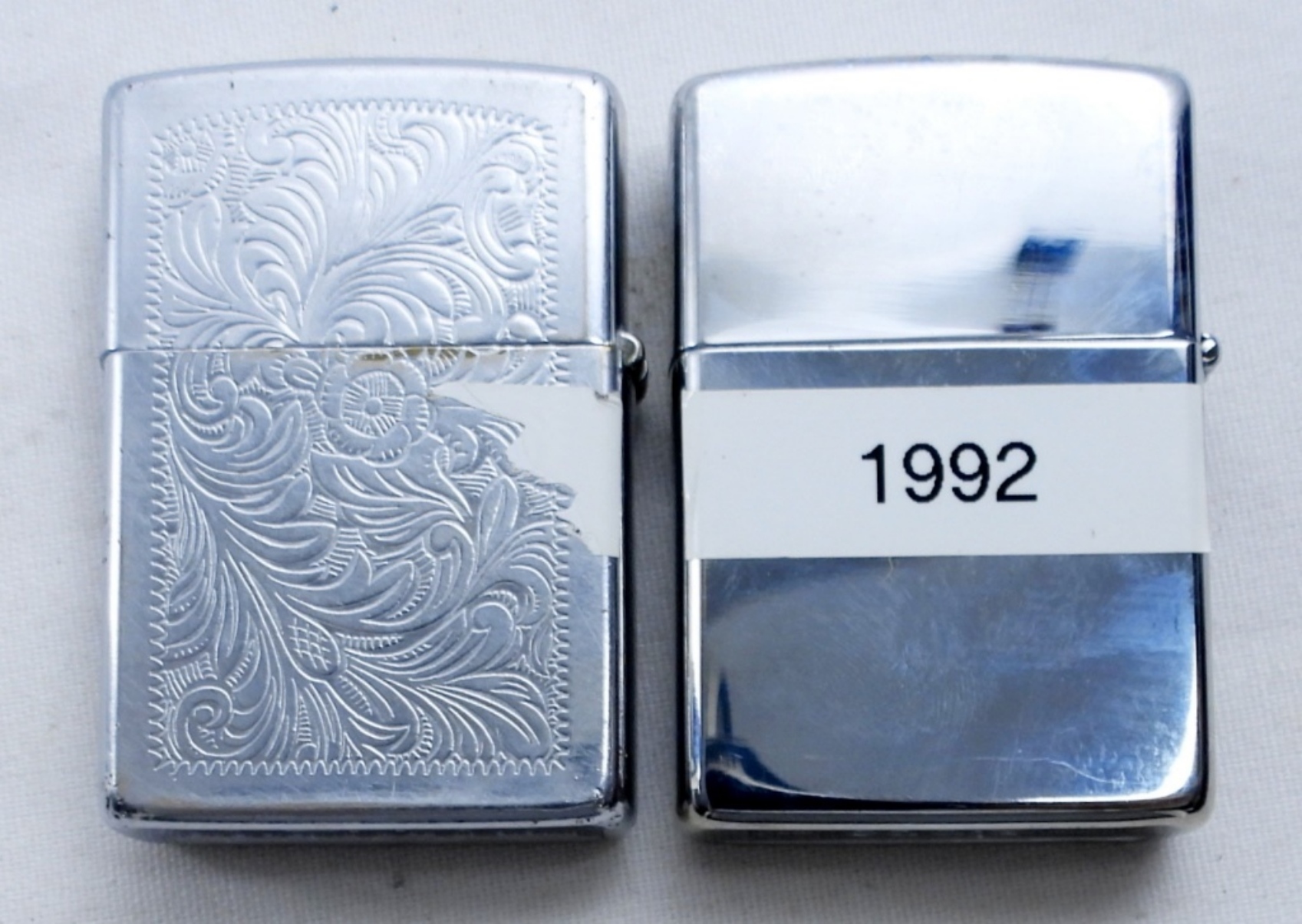 VTG 1992 ZIPPO WITH DESIGN ON THE FRONT, FIRED. 1992 VINTAGE TEXAS SUNSET ZIPPO, UNFIRED.