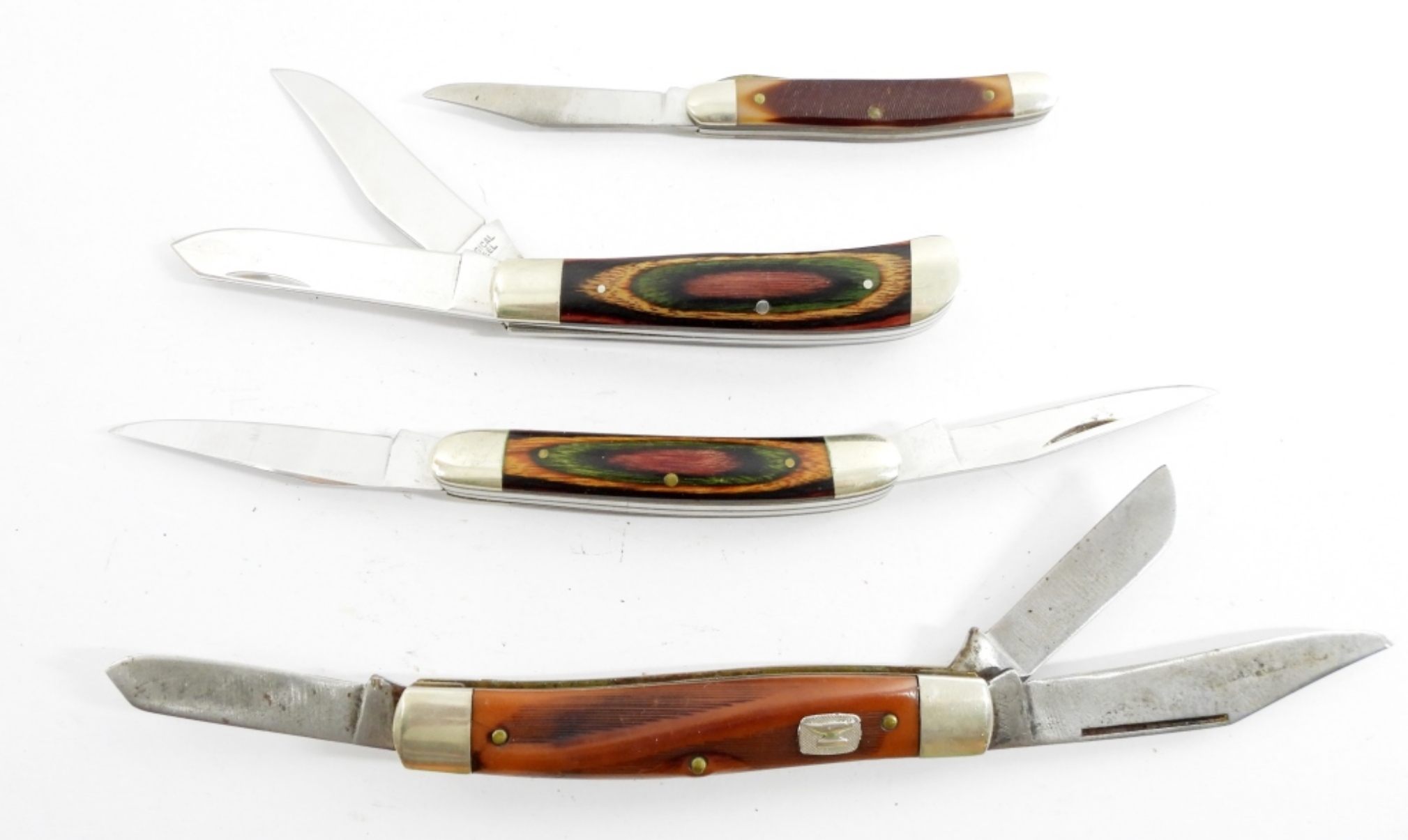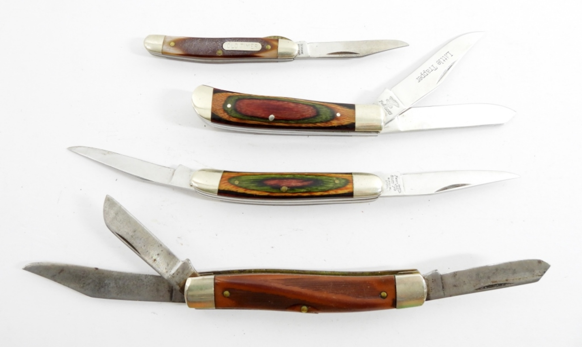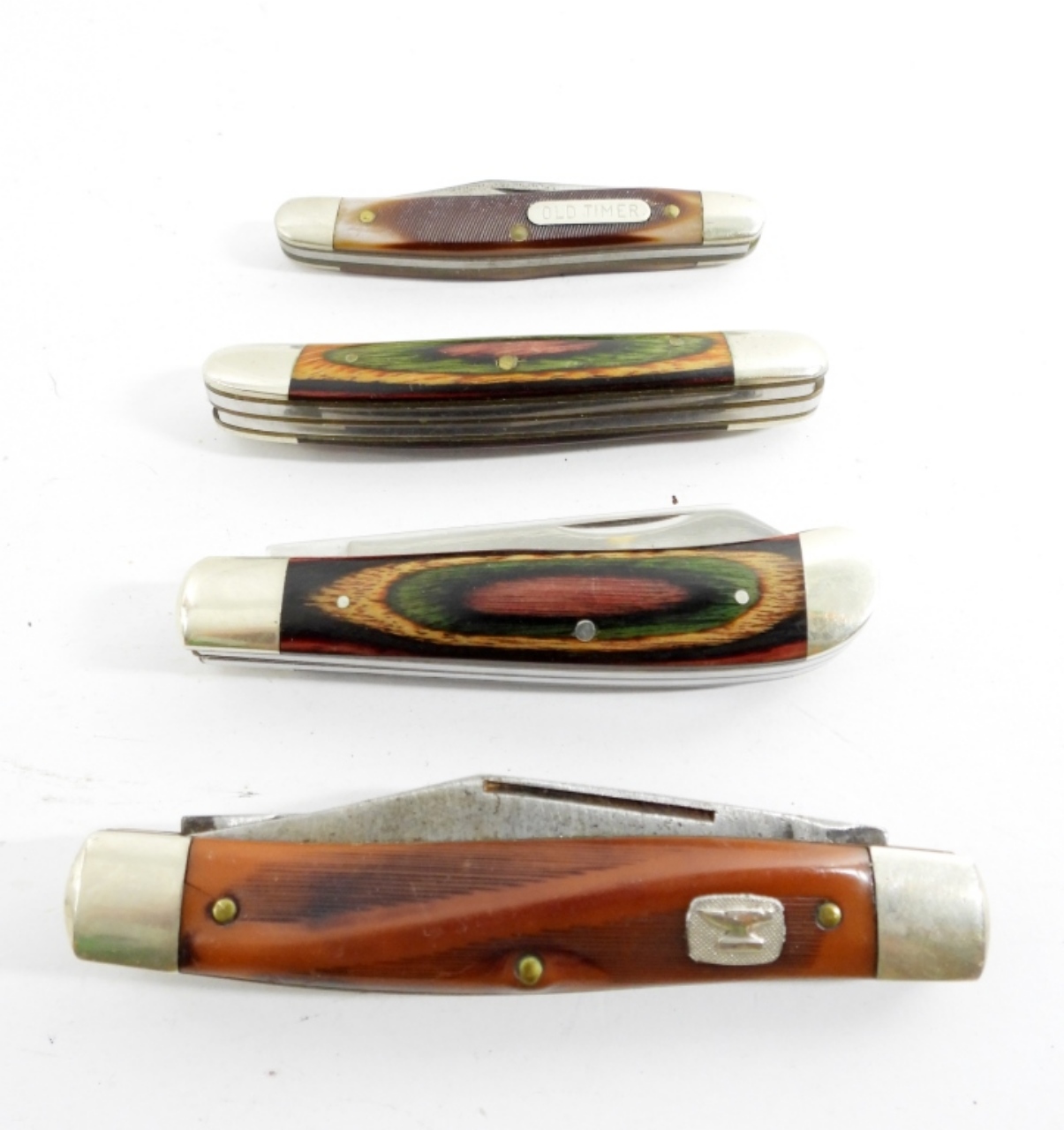 (2) FROST CUTLERY DAMASCUS STAINED WOOD HANDLE like new – ANIVIL & OLD TIMER USED but NICE