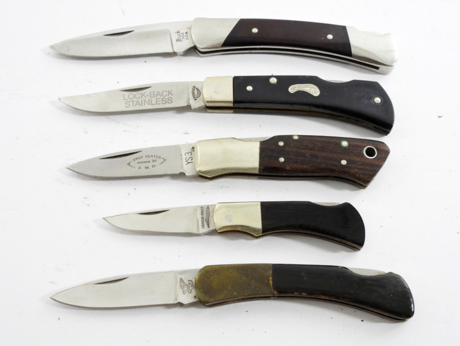 BUCK 503, PARKER FROST, FRONTIER, DROP HUNTER by JMG, FROST CUTLERY – NICE CONDITION LOT