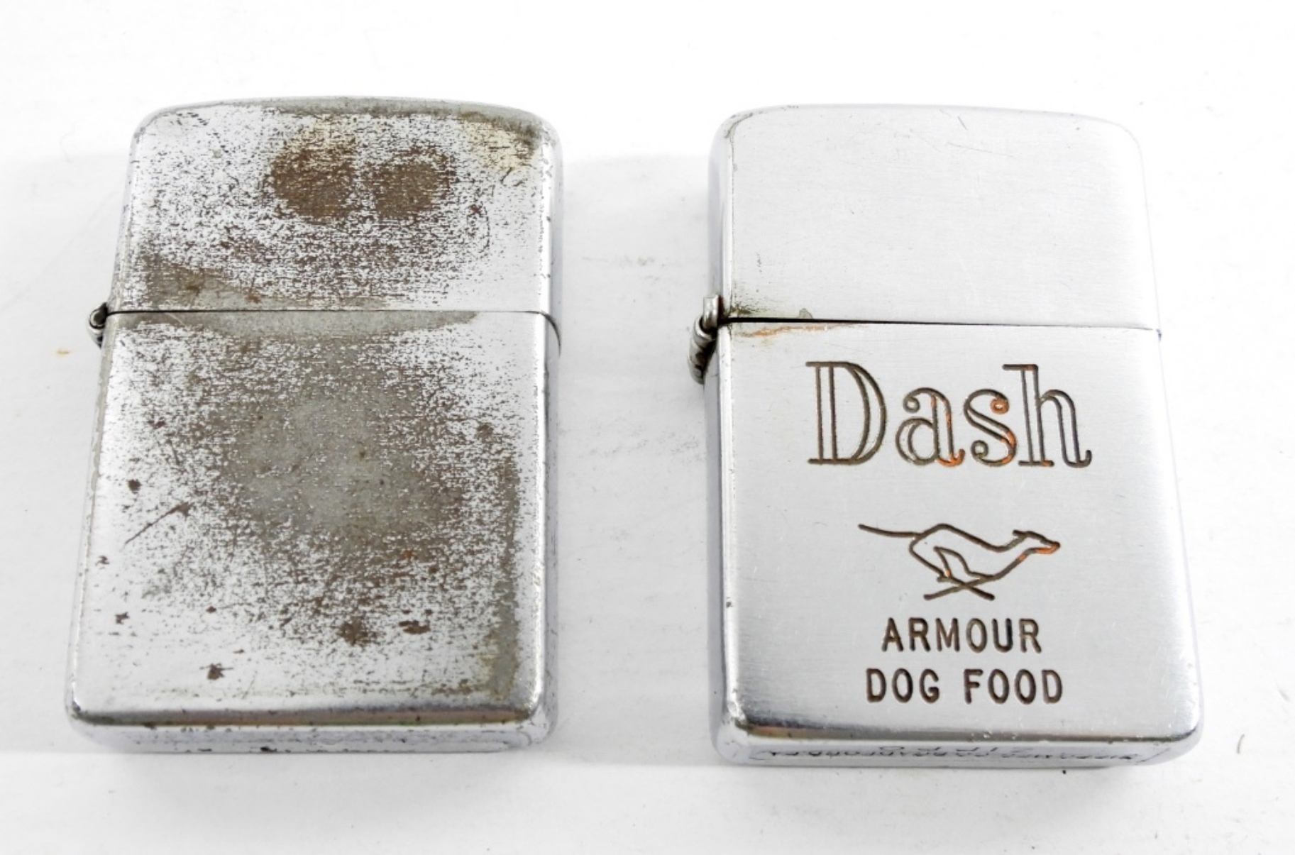 PAT. 2032695 with “DASH ARMOUR DOG FOOD” AD on COVER & PAT. 2517191 with wear on case – BOTH MATCHING INSERTS – USED / UNTESTED