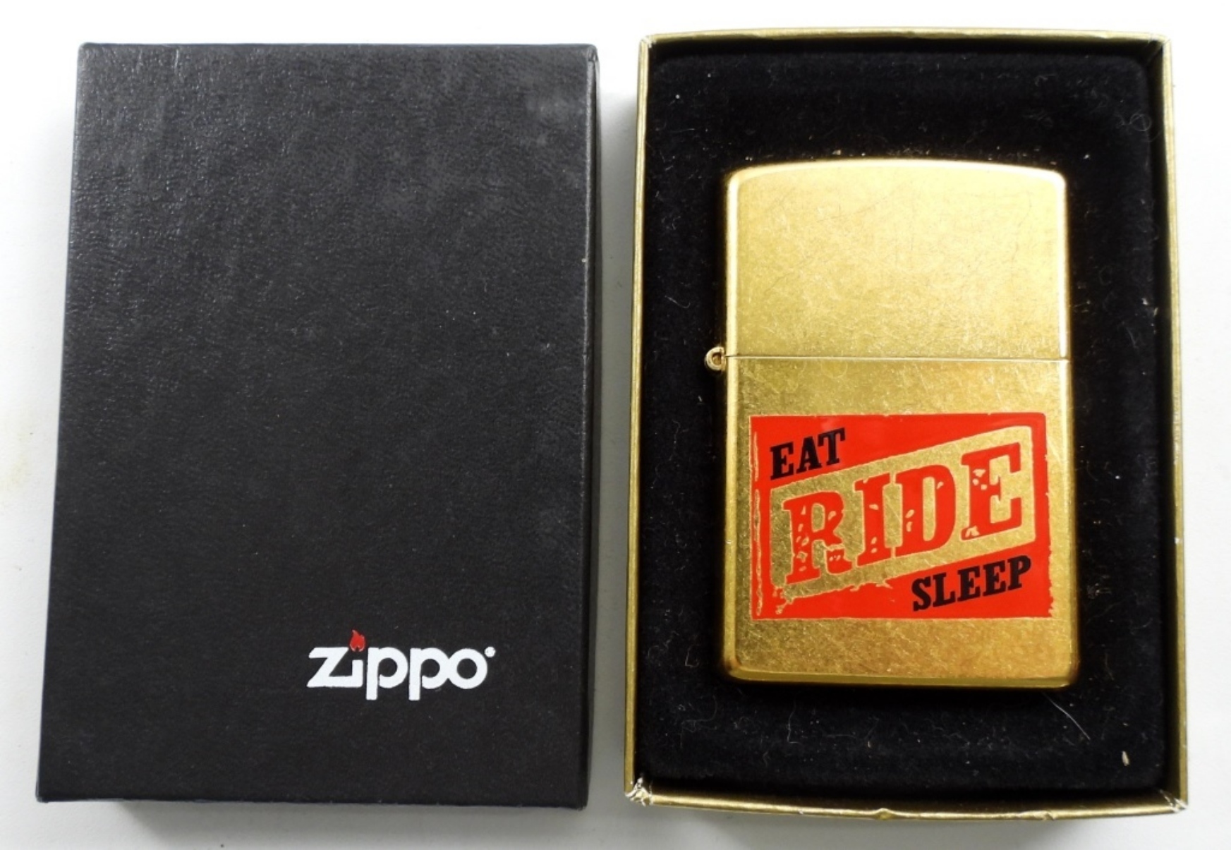 2004 SEALED/UNFIRED BRASS EAT,RIDE,SLEEP ZIPPO IN BOX