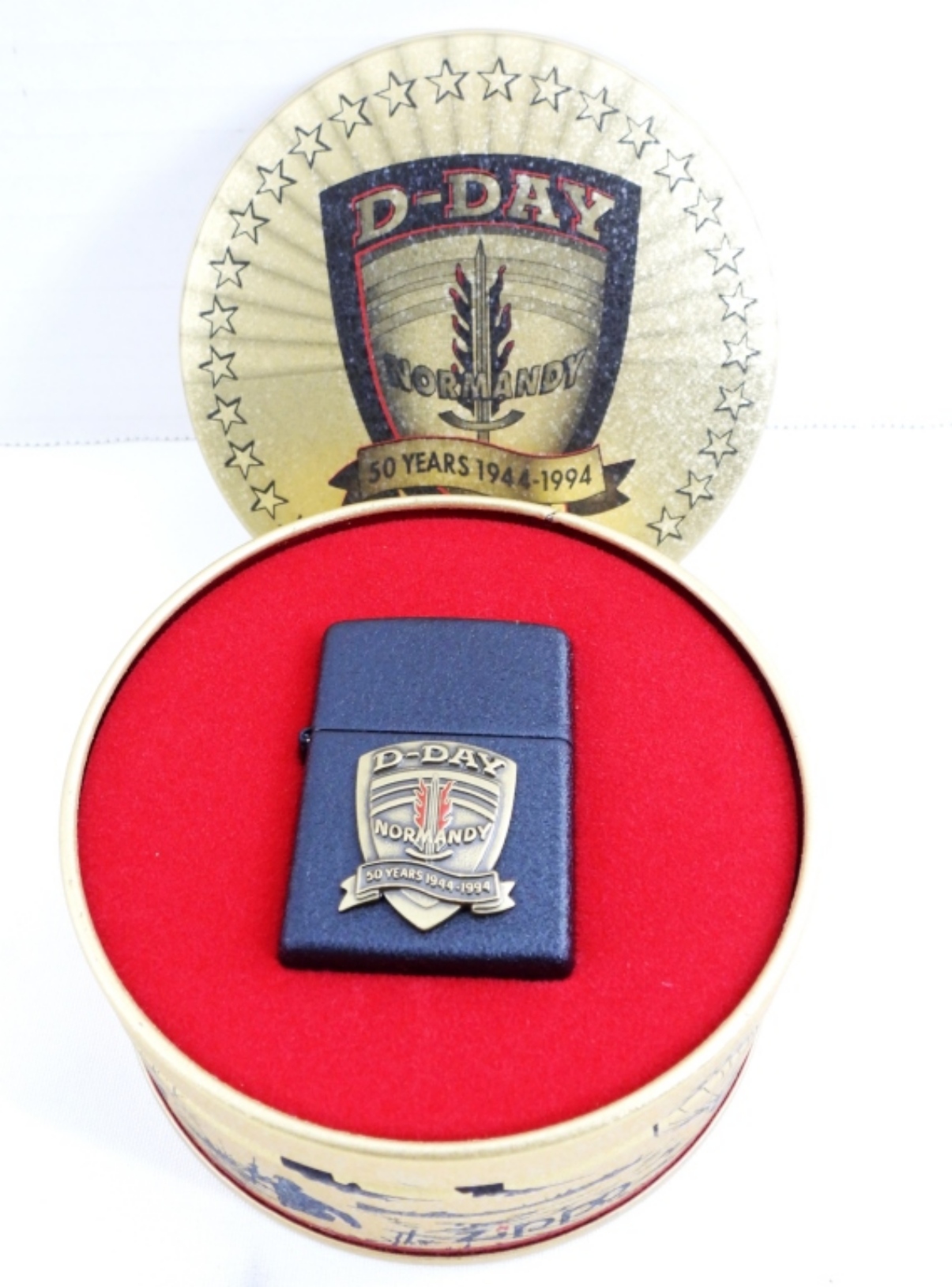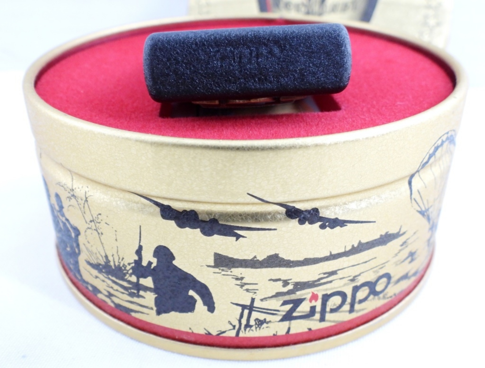 1994 D-DAY EDITION ZIPPO WITH THE D-DAY TIN- THE ZIPPO IS SEALED & UNFIRED. IN GOOD CONDITION- PREOWNED.