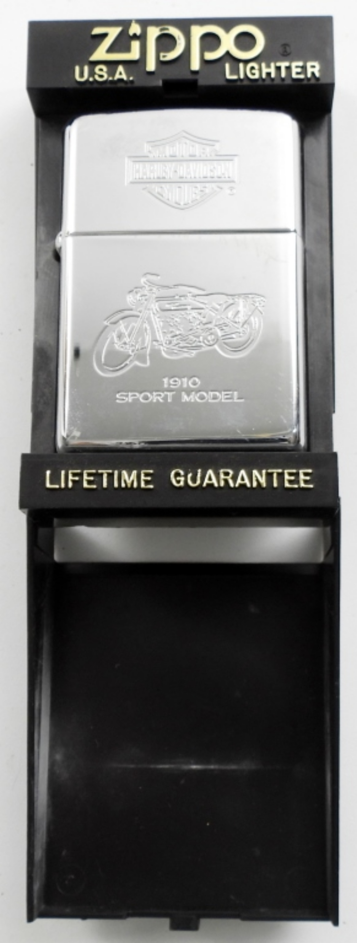 1998 SEALED/UNFIRED HARLEY DAVISON MOTORCYCLE 1910 SPORT MODEL CHROME ZIPPO IN CASE
