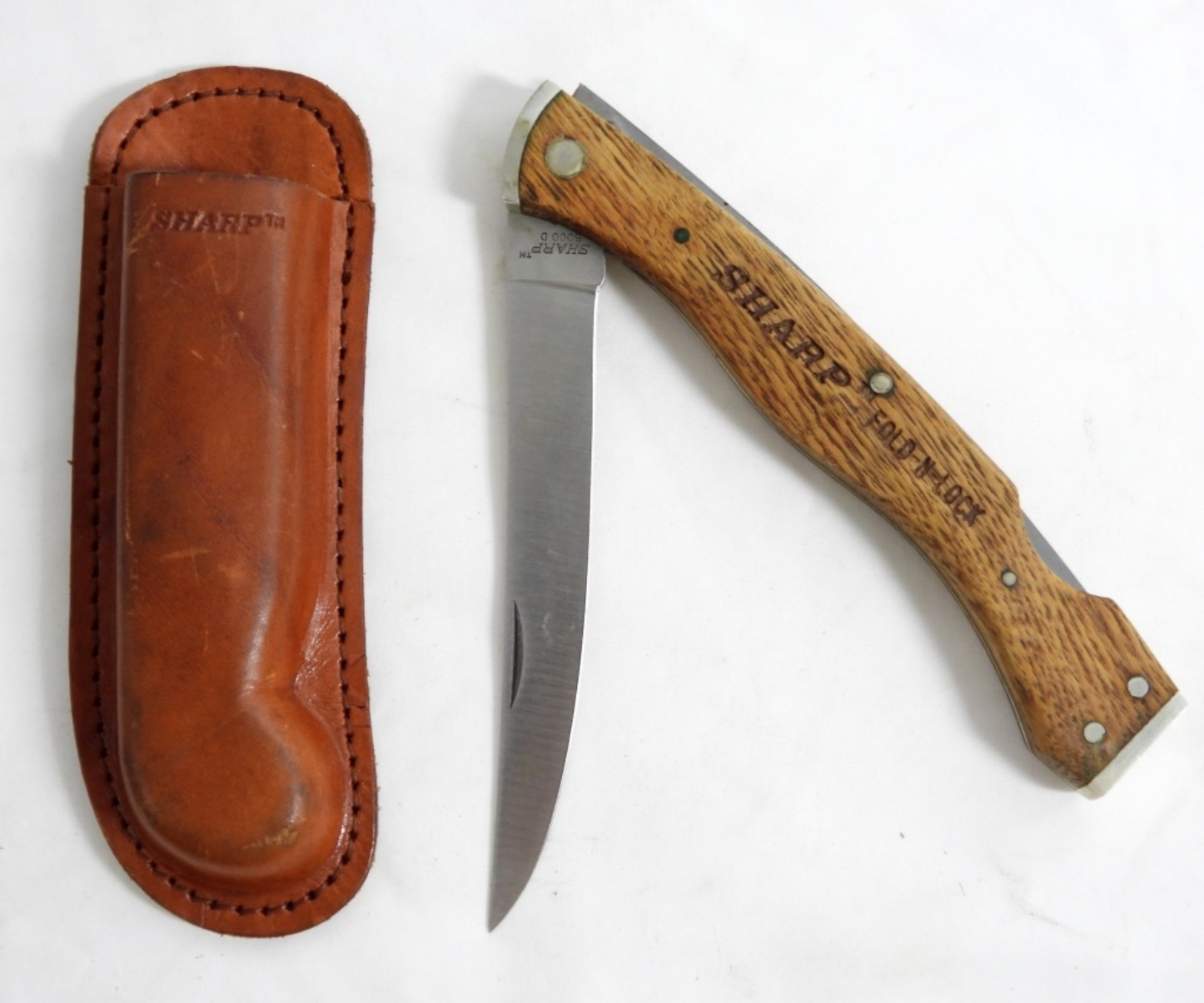 VINTAGE SHARP FOLD-N-LOCK 5000 D IN ORIGINAL SHEATH, MADE IN JAPAN, GOOD CONDITION