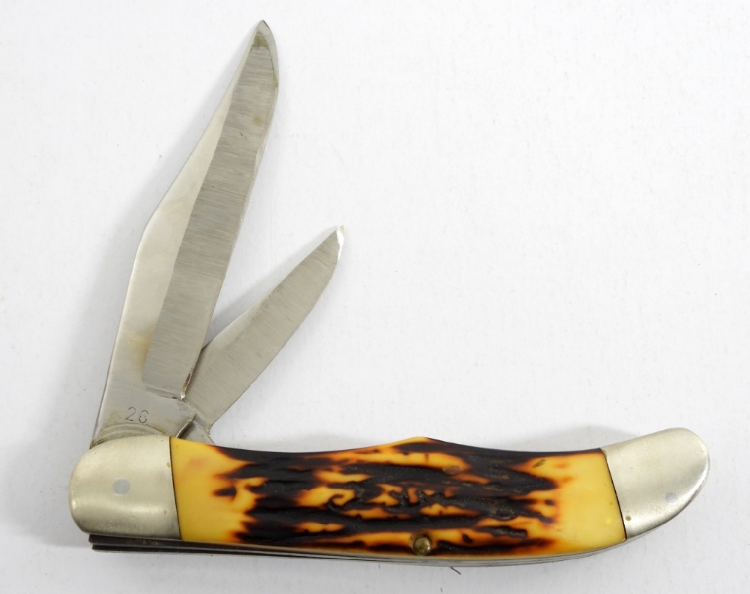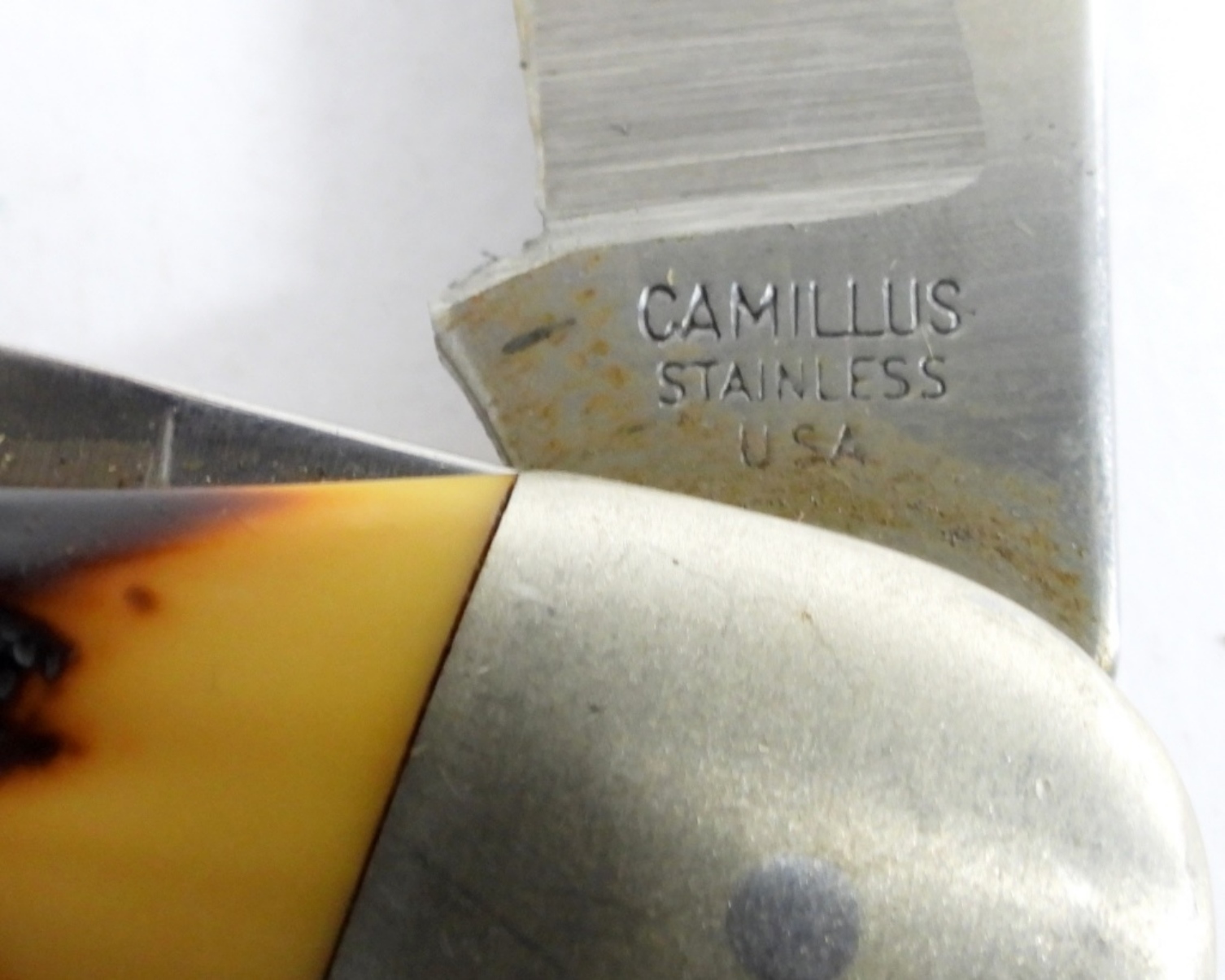 VINTAGE CAMILLUS 26 2 BLADE FOLDING KNIFE, IN GOOD CONDITION, BONE DESIGN HANDLE