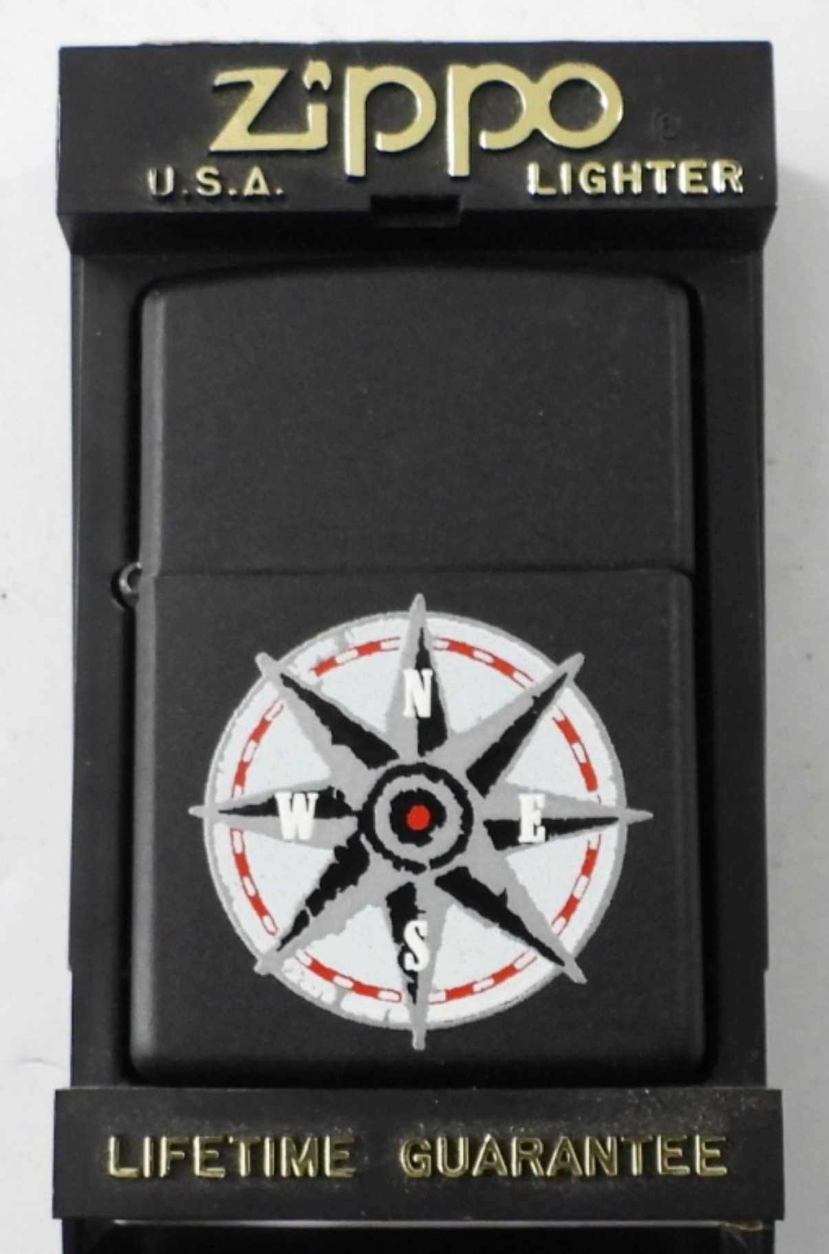 1998 UNFIRED BLACK MATTE MARLBORO COMPASS ZIPPO IN CASE