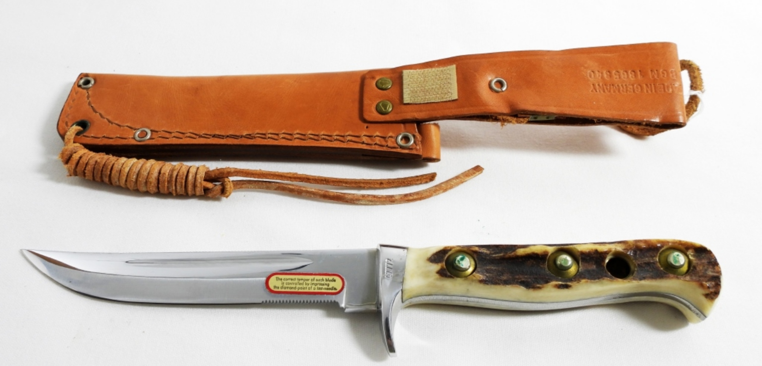 with SHEATH – 9″ LONG #6382 w/STAG HANDLE – LIKE NEW!