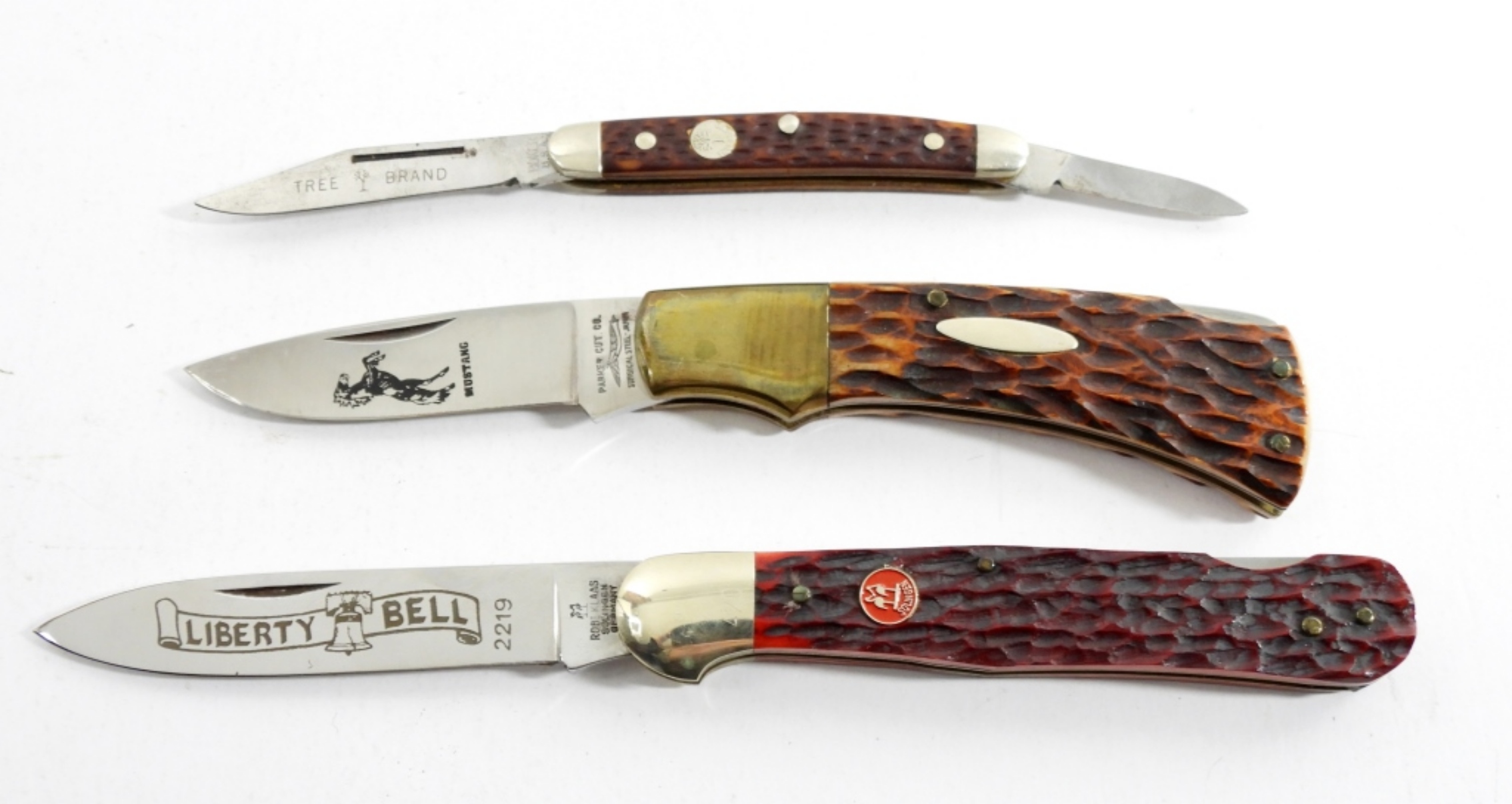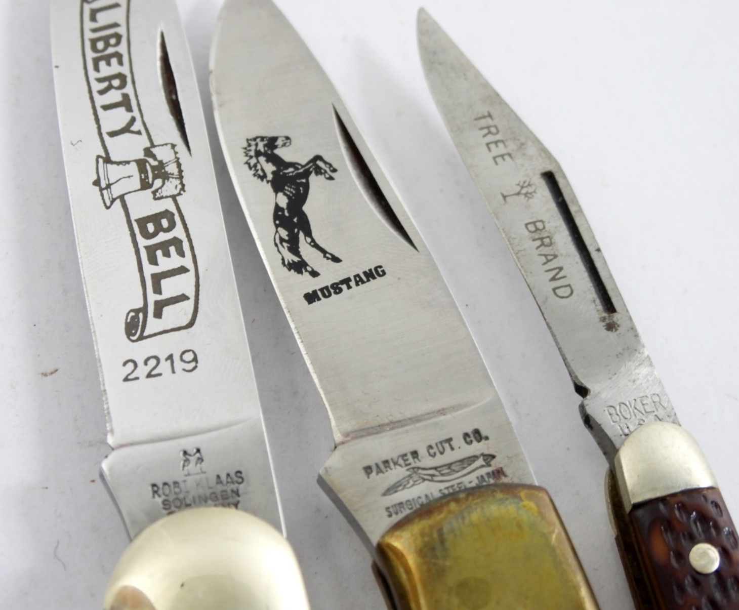 PARKER CUT CO “MUSTANG”, ROBI KLASS SOLINGEN KISSING CRANE LIBERTY BELL & BOKER TREE SMALL TWO BLADE