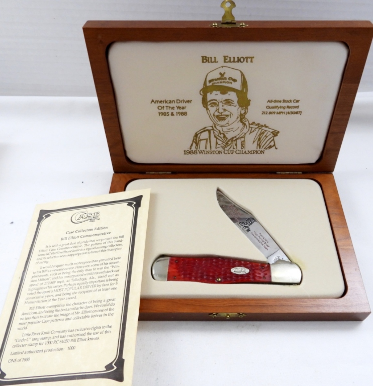 CASE COLLECTORS EDITION BILL ELLIOTT COMMEMORATIVE ON RC 61050 REDBONE CASE KNIFE 1/1000