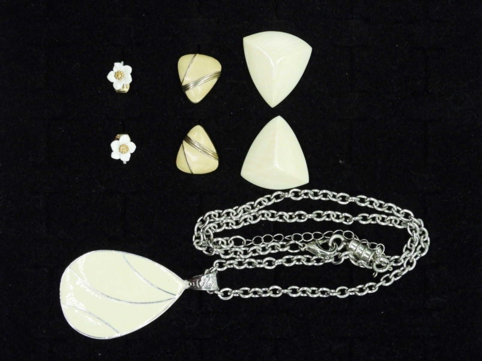 NECKLACE 20″. 3 PAIR OF VINTAGE CLIP ON EARRINGS.
