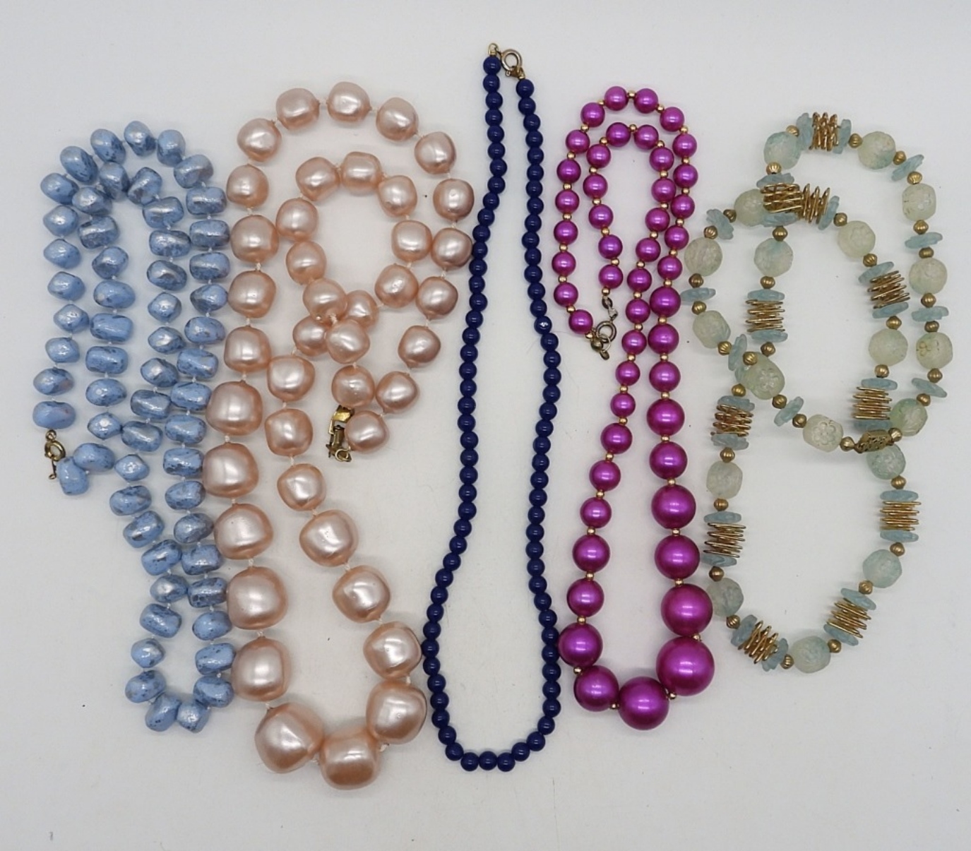 FIVE CHUNKY BEADED NECKLACES. 18-26″.