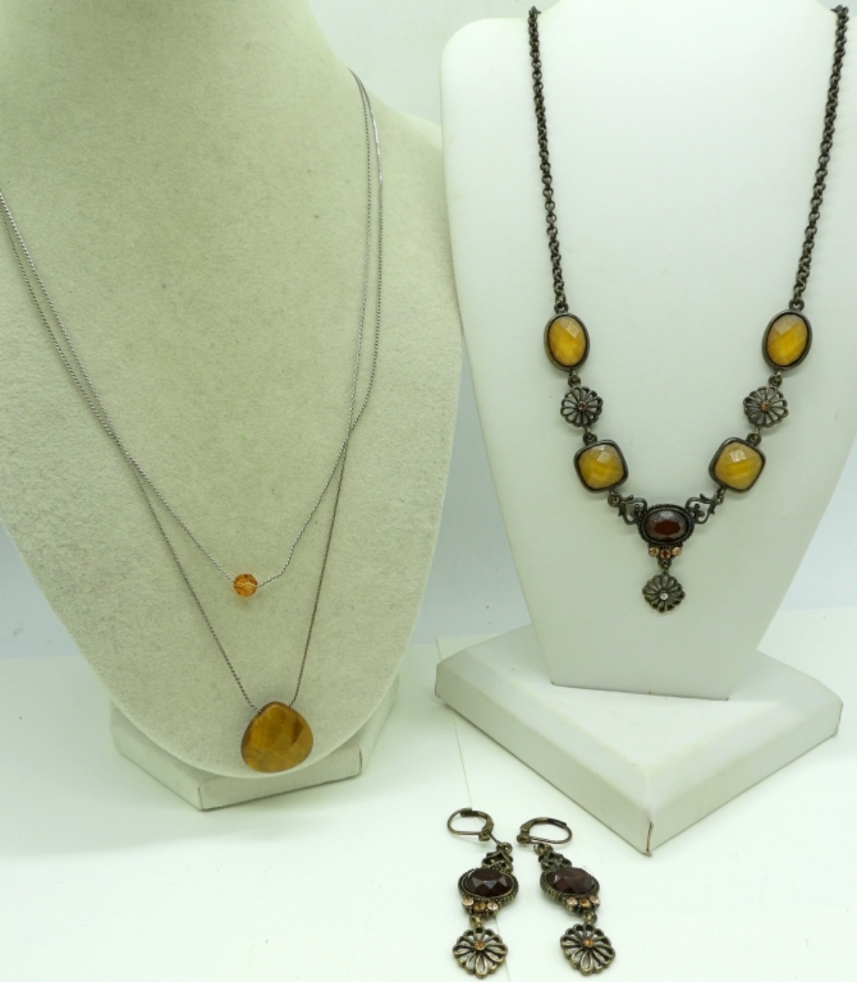 LIA SOPHIA TIGERS EYE SET, EARRINGS & NECKLACE. 18″.