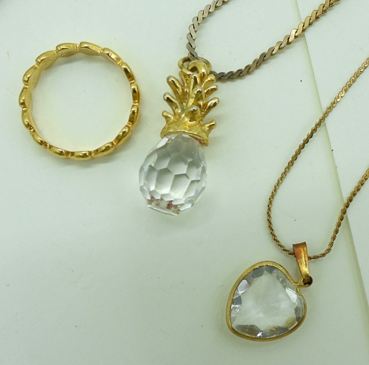 BRACELET, 10″ ADJ. TWO NECKLACES, 16-18″. RING SIZE 8.