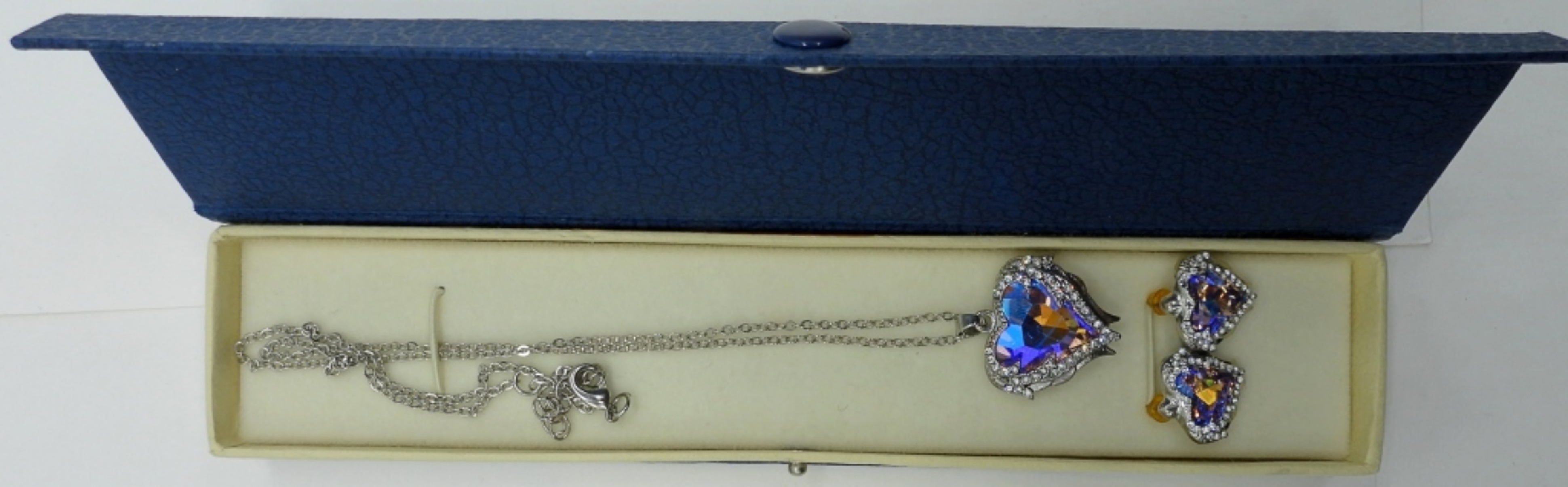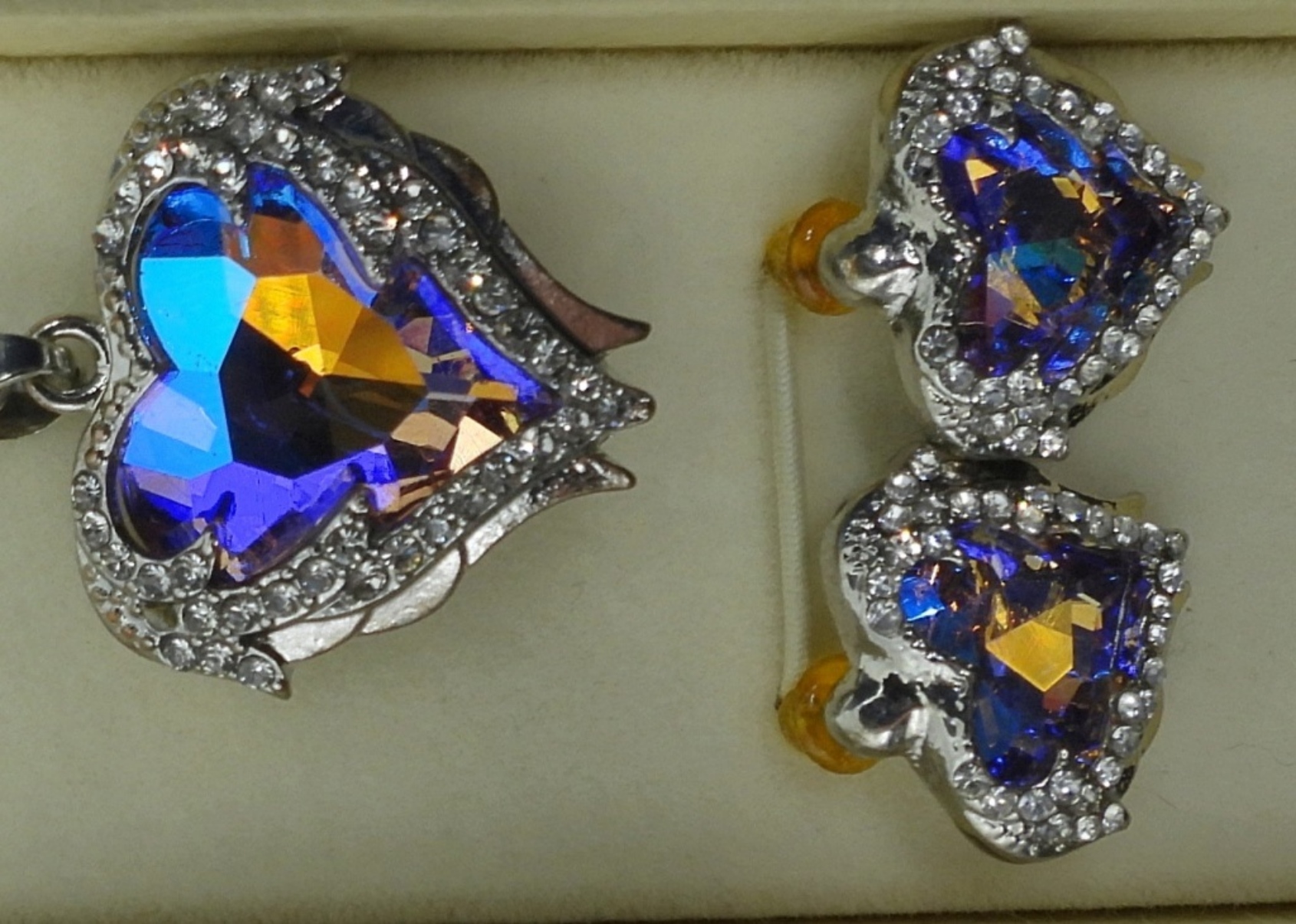 LOOKS LIKE MYSTIC TOPAZ, IT’S NOT. NECKLACE IS 20″. MATCHING PIERCED EARRINGS.