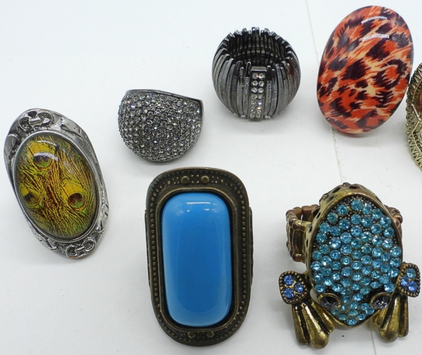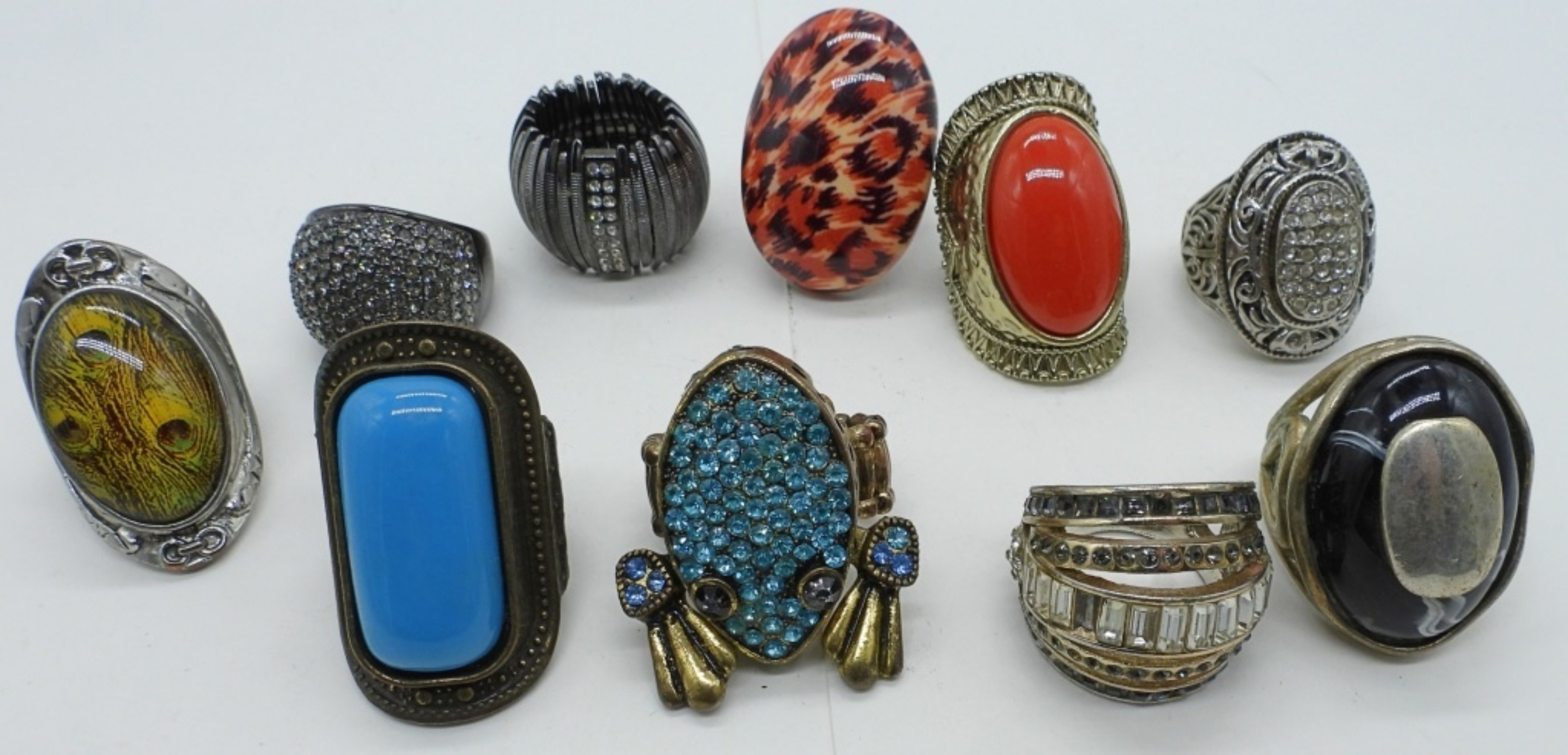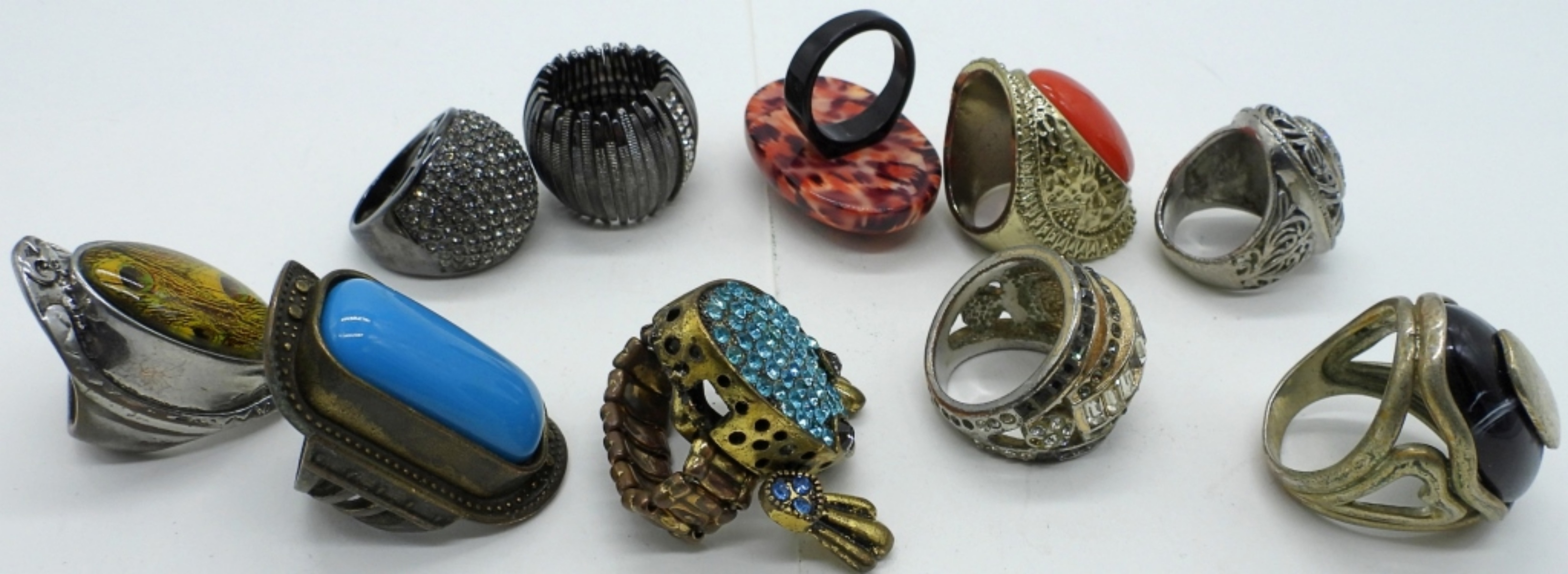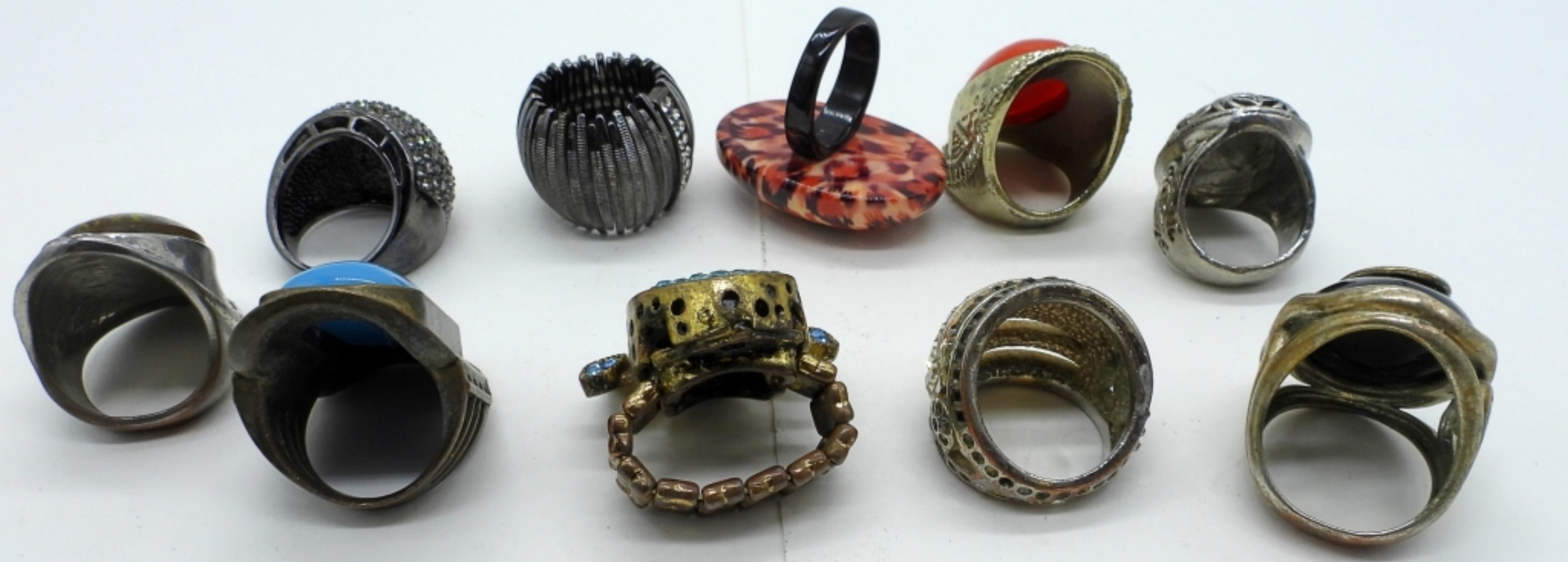 TEN ODDLY WEIRD FASHION RINGS. SIZES ADJUSTABLE – 9.