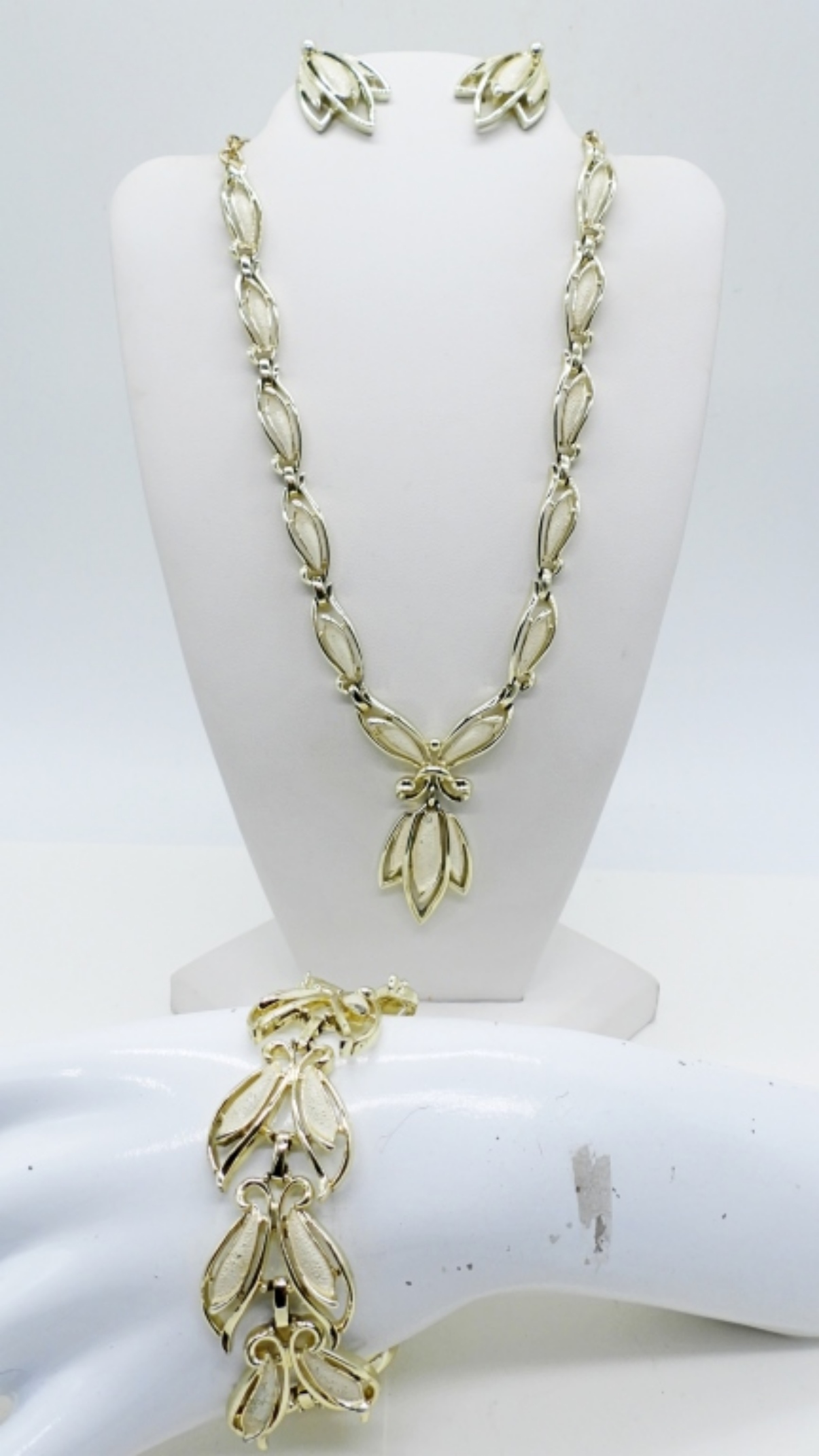 3 PIECE SARAH COVENTRY NECKLACE (18″), BRACELET (7″) AND CLIP ON EARRINGS.