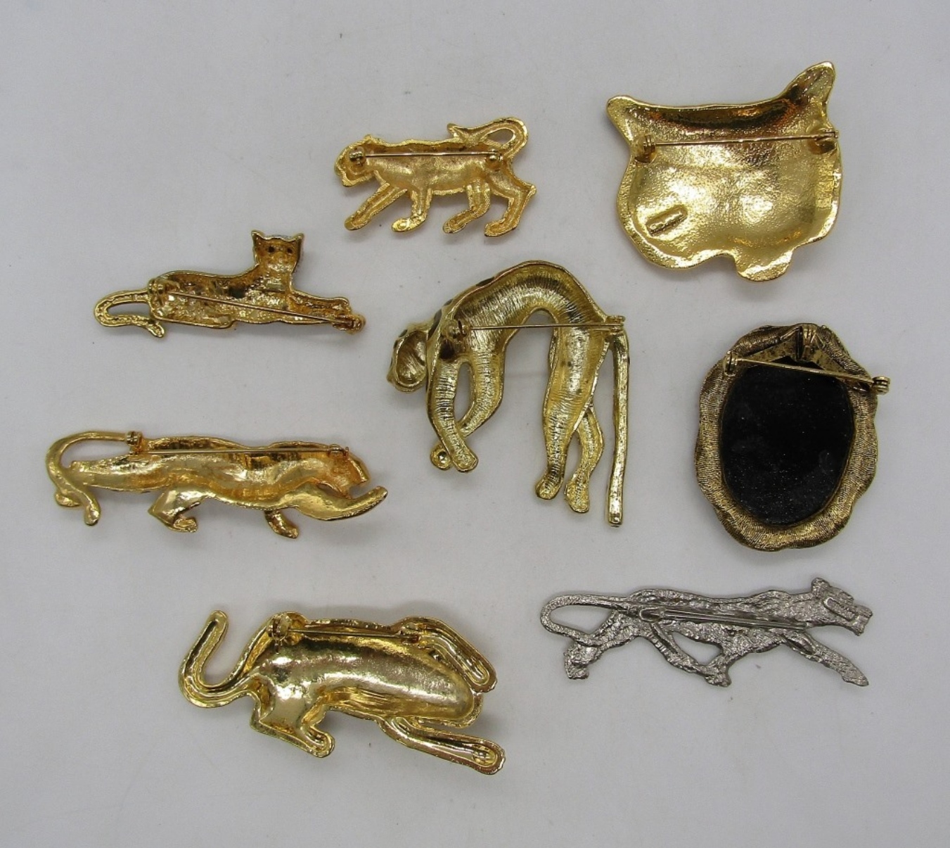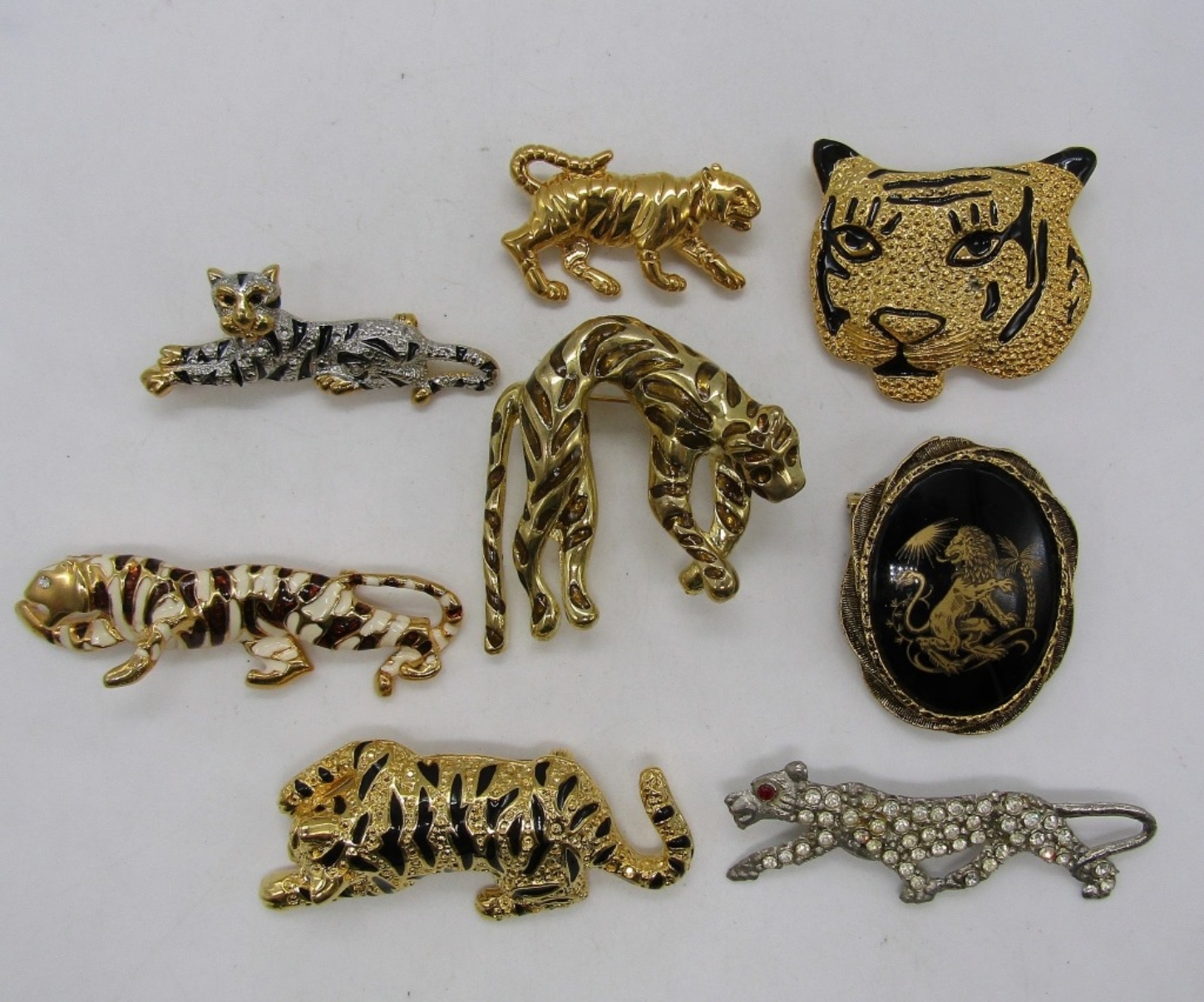 EIGHT VINTAGE TIGER AND LION BROOCHES. 2″-3″.