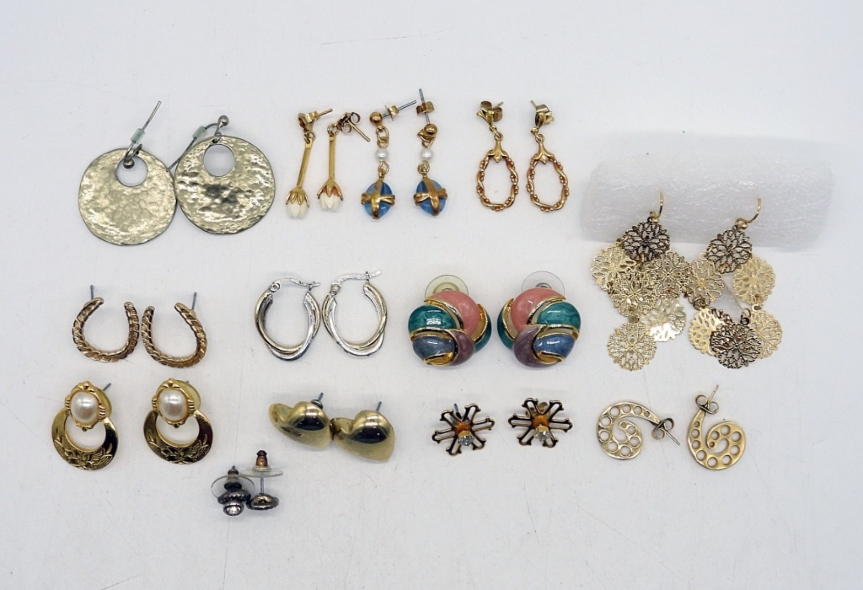THIRTEEN PIERCED FASHION EARRINGS. NOT ALL HAVE BACKS.