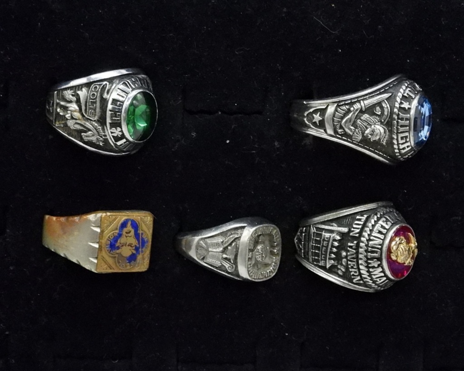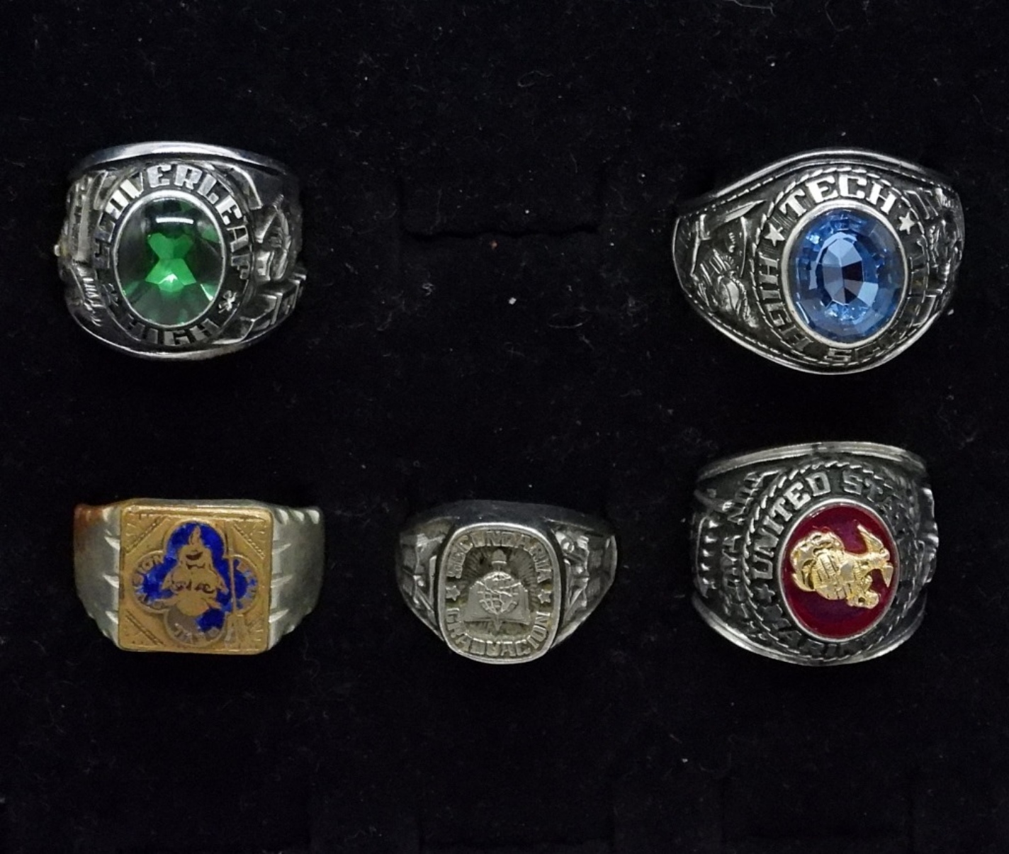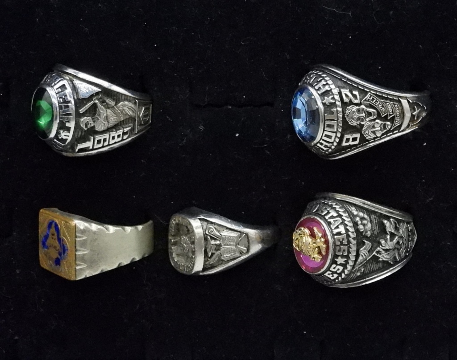 FIVE RINGS. SIZES 7-13. ONE BAND IS MISSHAPEN.