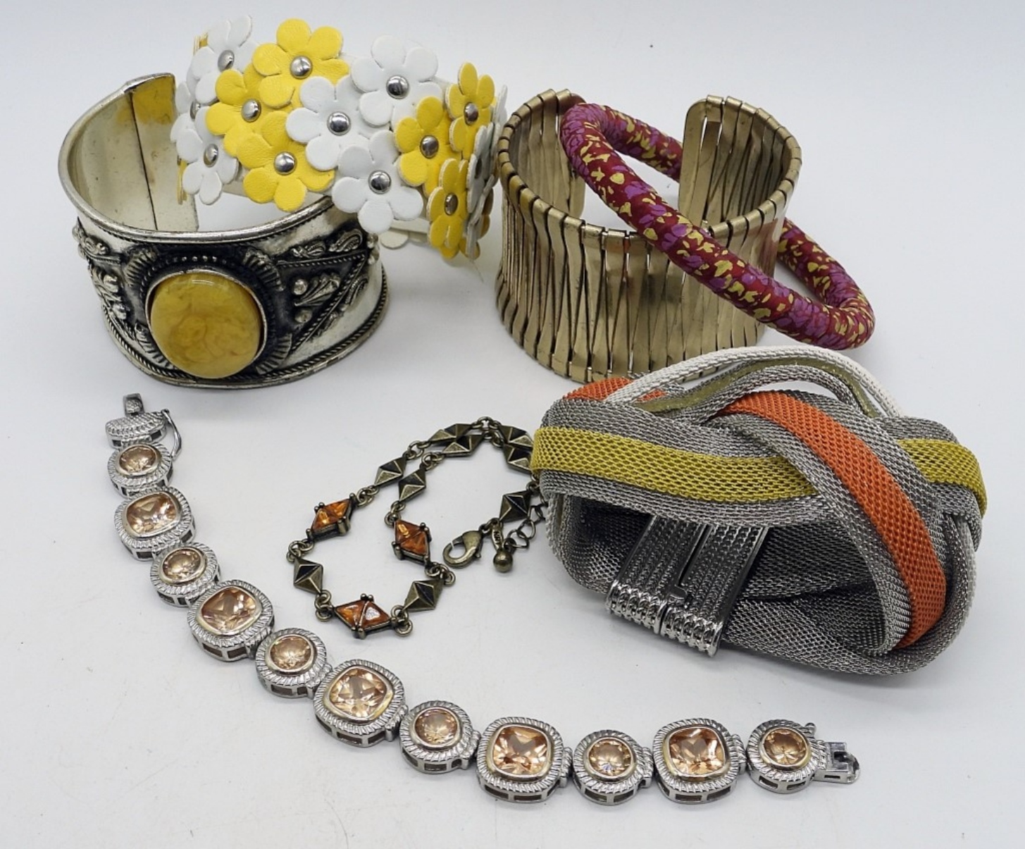 SEVEN BRACELETS. 4 CHUNKY, TWO BRACELET, ONE BANGLE. 7-8″.