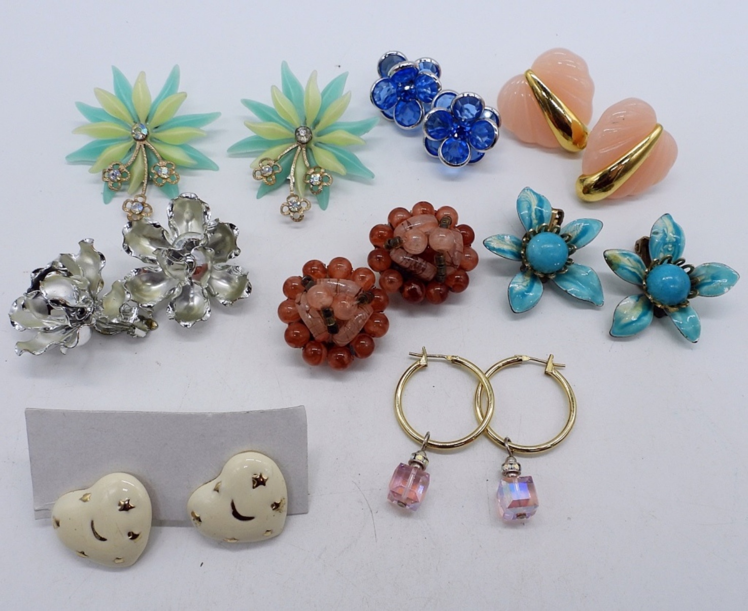 6 PAIR OF CLIP ON EARRINGS. TWO PAIR OF PIERCED.
