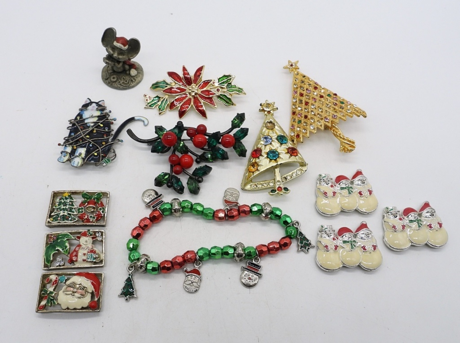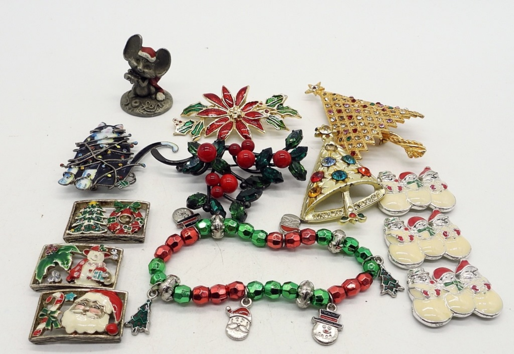 FIVE PINS, ONE STRETCHY BRACELET, MOUSE TRINKET & 6 BRACELET LINKS.