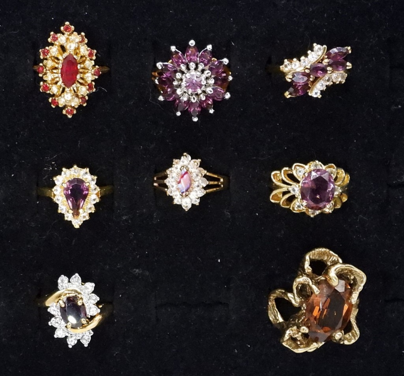 EIGHT RINGS. GOLD TONE. VERY PRETTY. SIZES 5-8