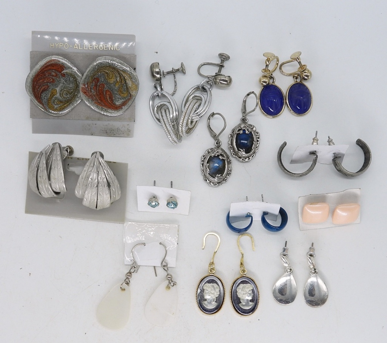 12 PAIR OF PIERCED EARRINGS. 9 PAIR PIERCED. 3 PAIR CLIP ON