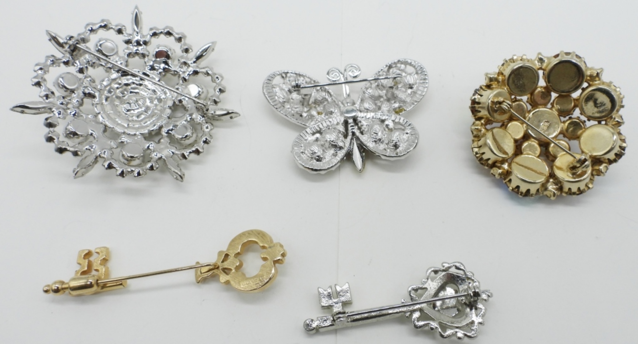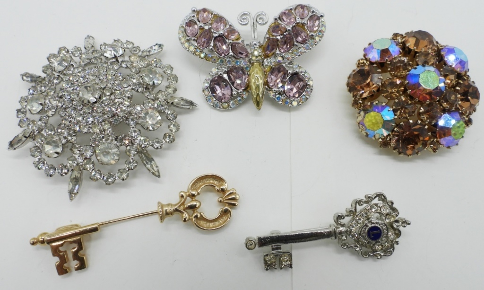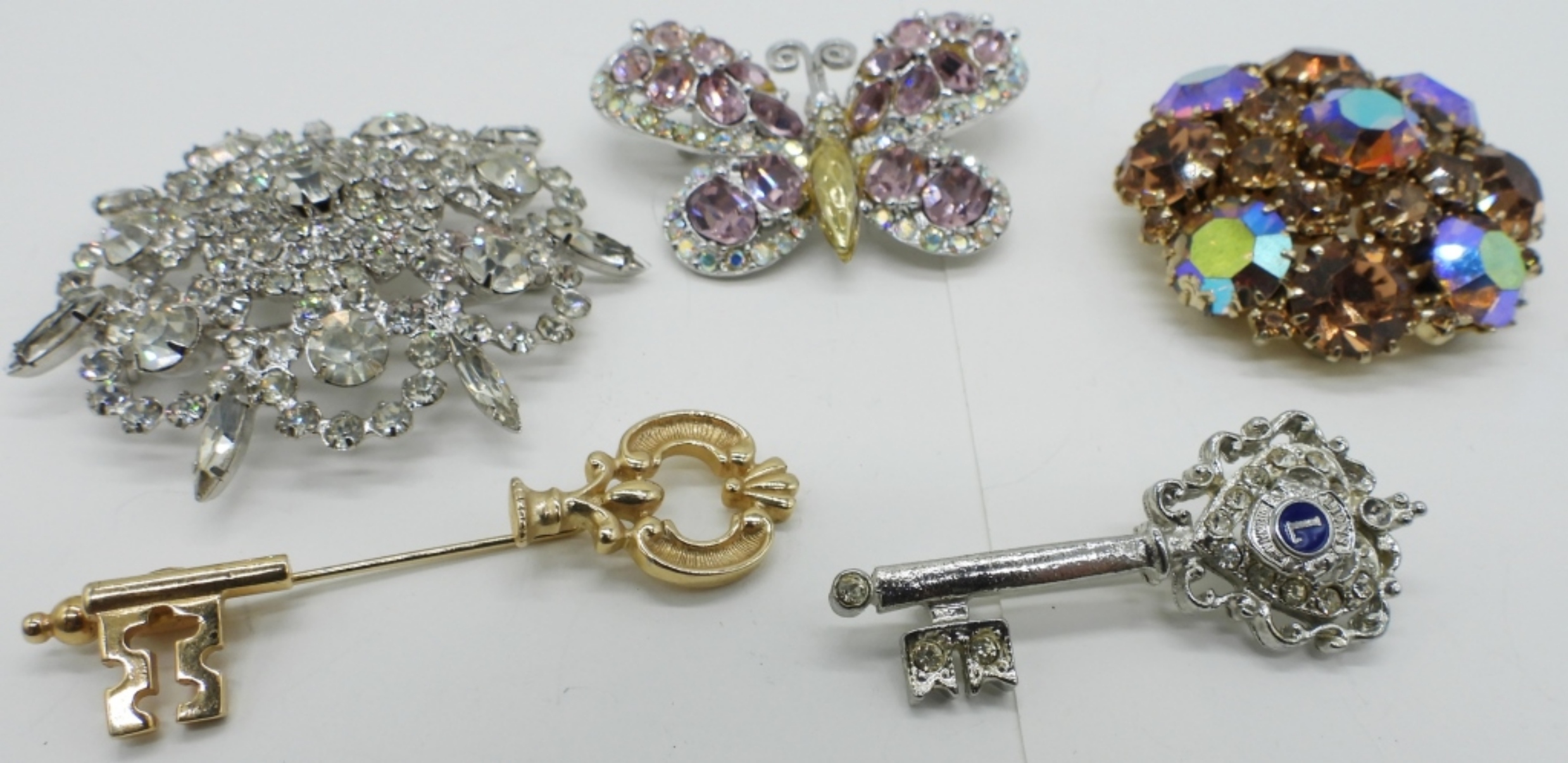 FIVE GOREOUS RHINESTONE BROOCHES. 2″-2.5″