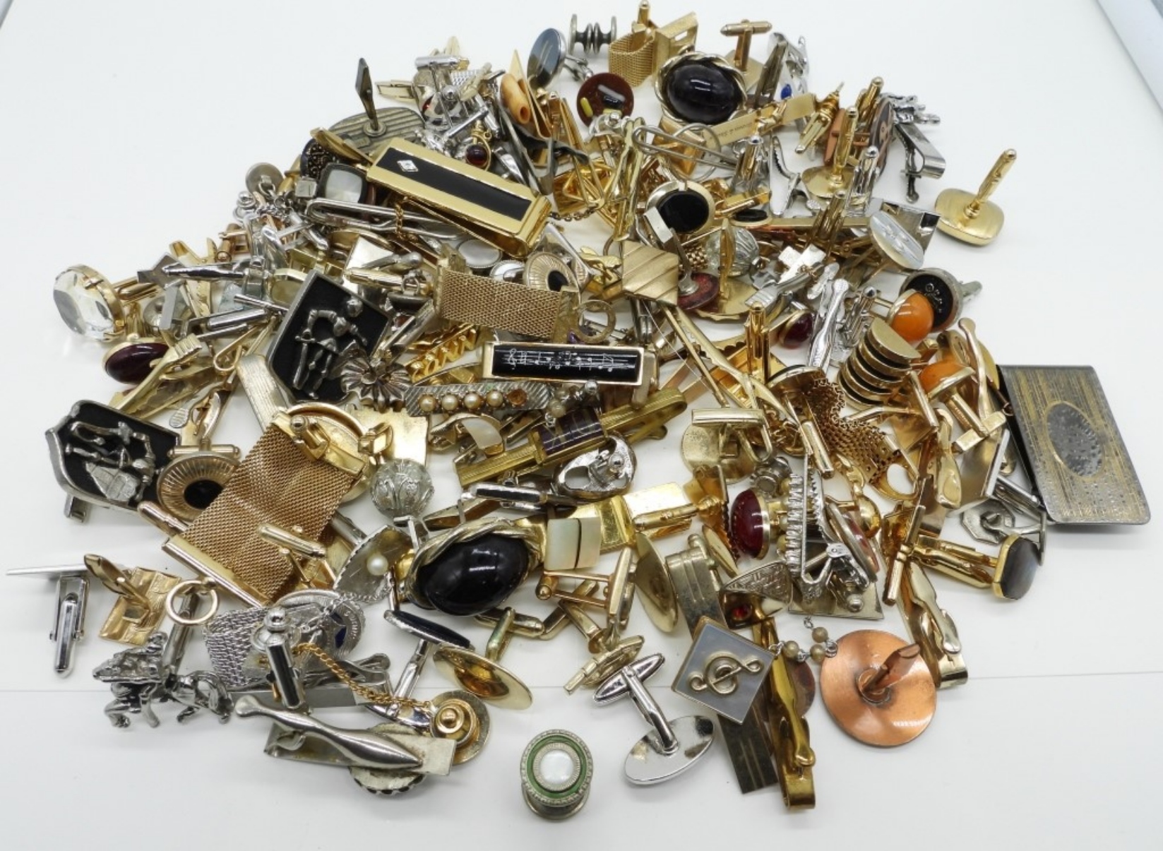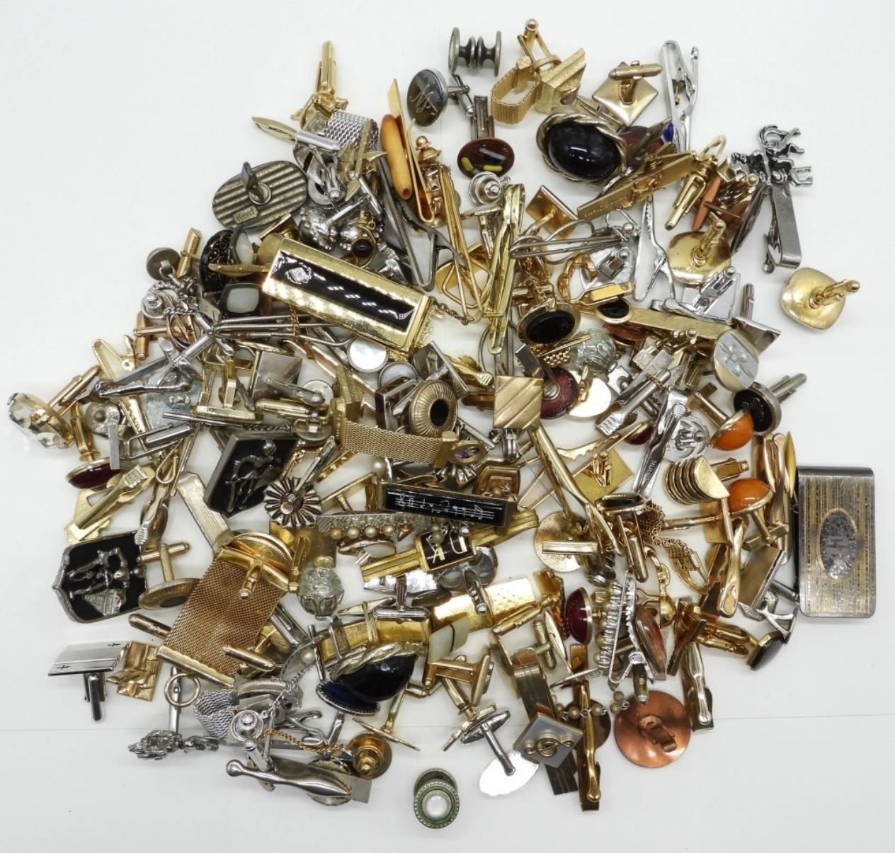 MEN’S VINTAGE AND MODERN ACCESSORIES, TIE TACKS, CUFF LINKS, CLIPS & MORE. MATCHING SETS & NON MATCHING. 2.48 LB BAG