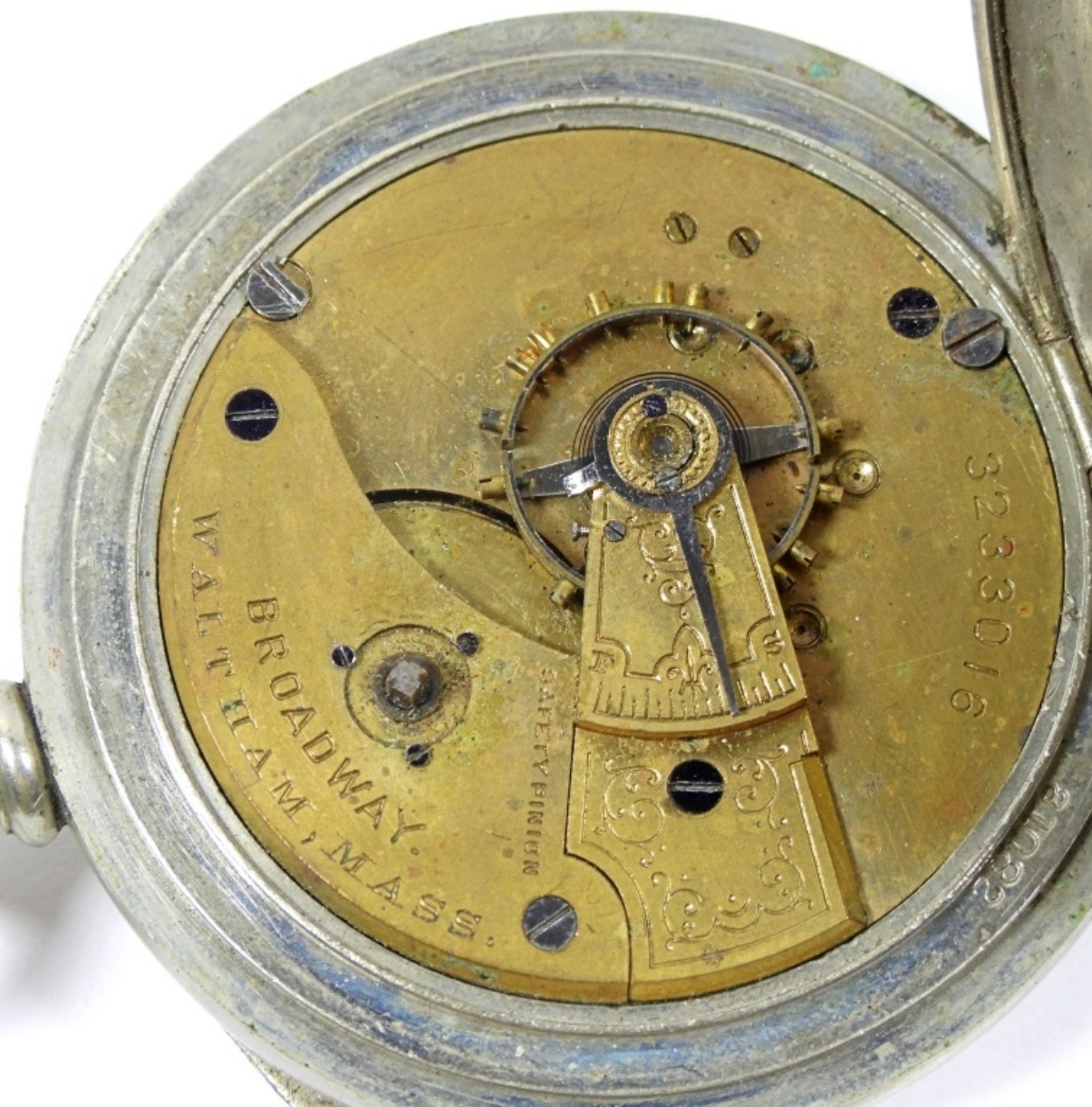 POCKET WATCH – NOT RUNNING – NO KEY, MISSING HANDS – SERIAL #3233016, GRADE BROADWAY,7j – FOR PARTS/REPAIR