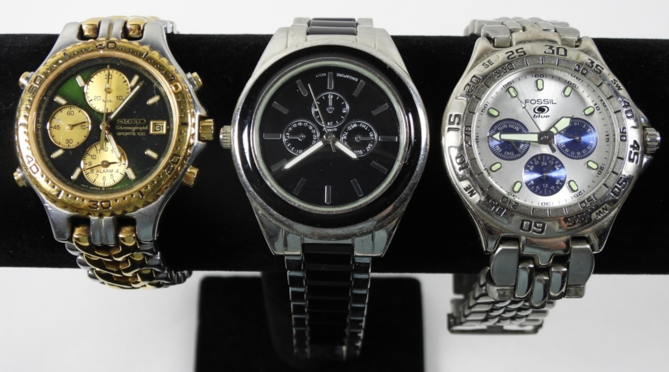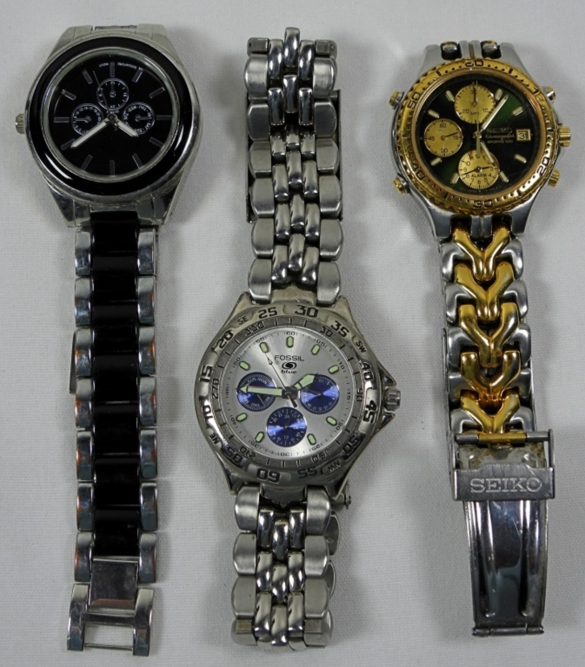 SINGAPORE QUARTZ, FOSSIL BLUE, SEIKO SPORTS 100 – UNTESTED – NOT RUNNING