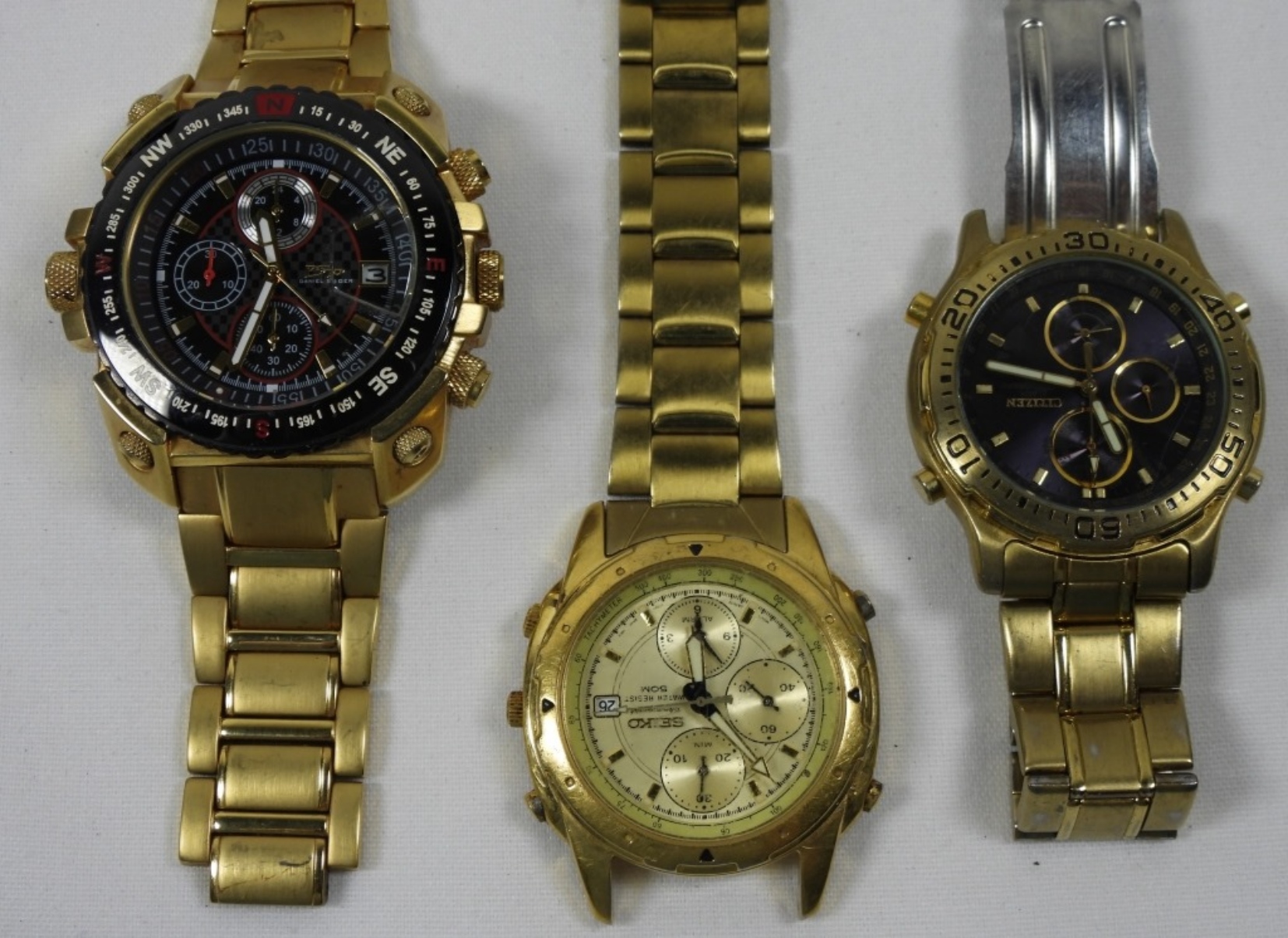 SEIKO, CITIZEN, DANIEL STEIGER (all have band issues)- UNTESTED – NOT RUNNING