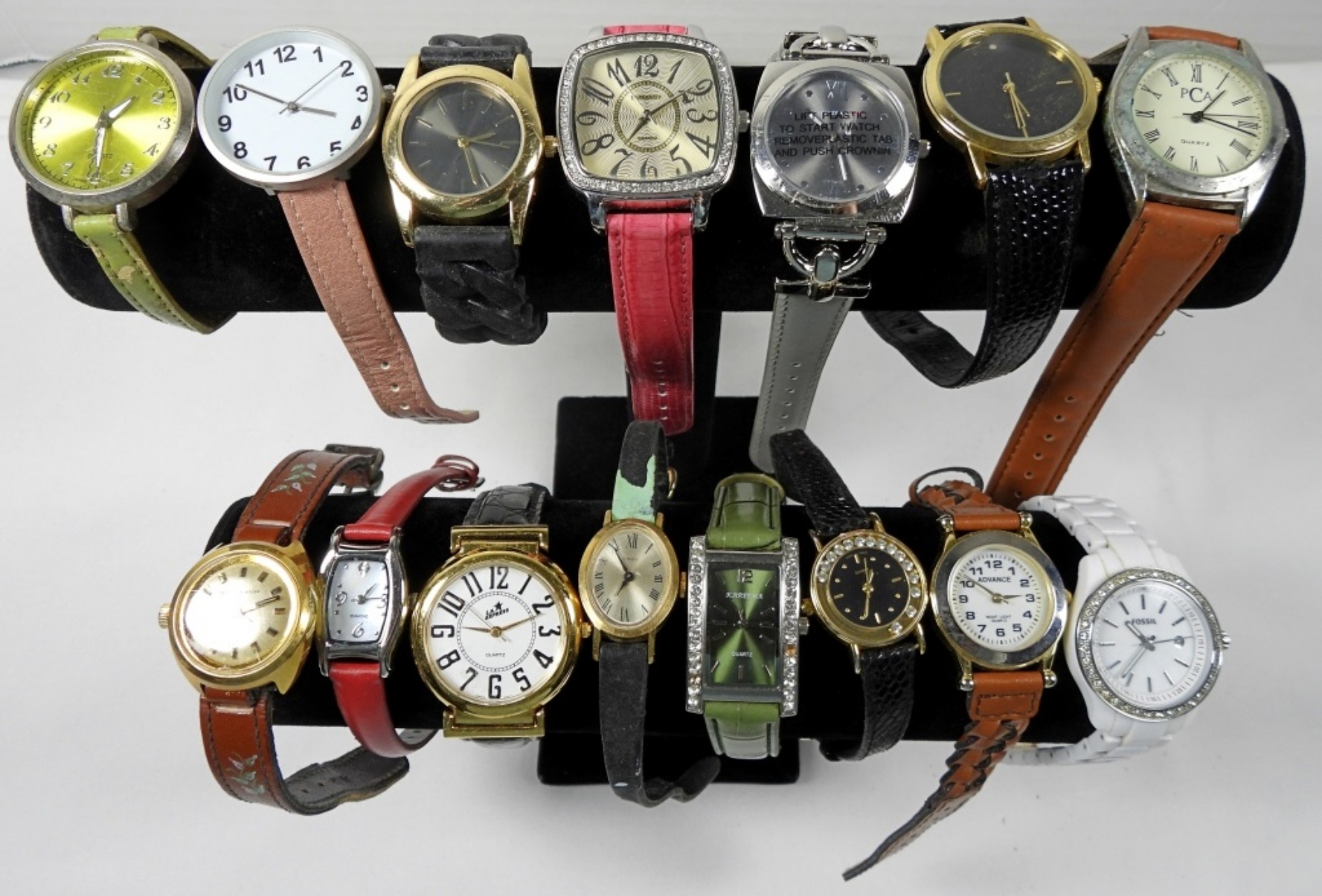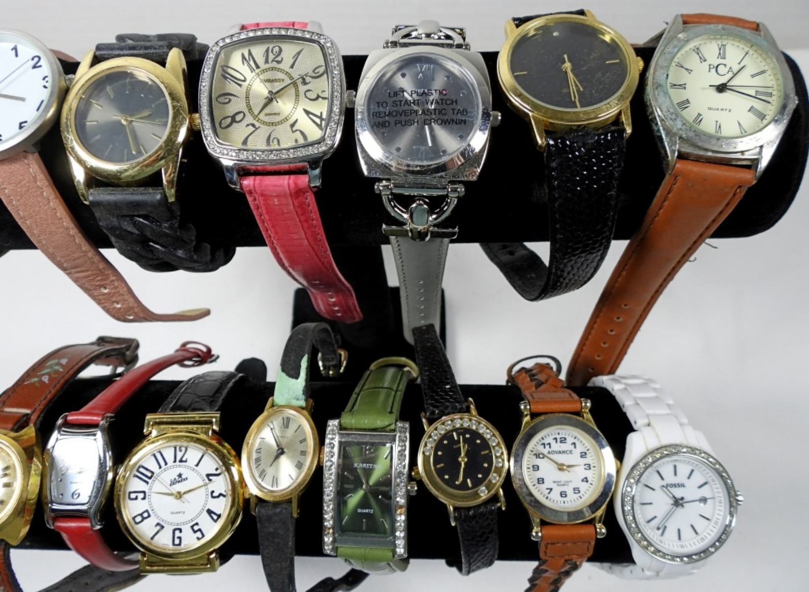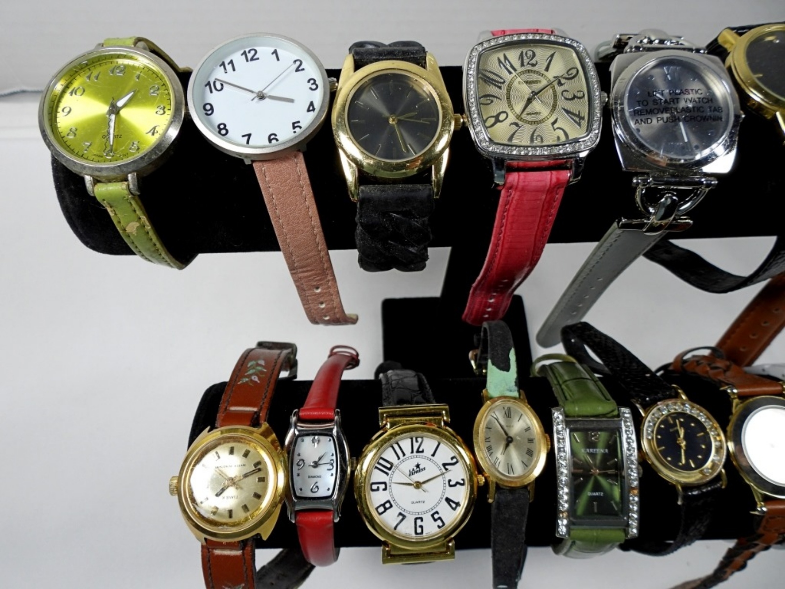 15 ASSORTED LADIES FASHION BAND WATCHES IN MIXED COLORS, SOME BRANDS INCLUDE: ISAAC MIZRAHI, TIMEX, EMBASSY AND MORE! UNTESTED AND UNVERIFIED