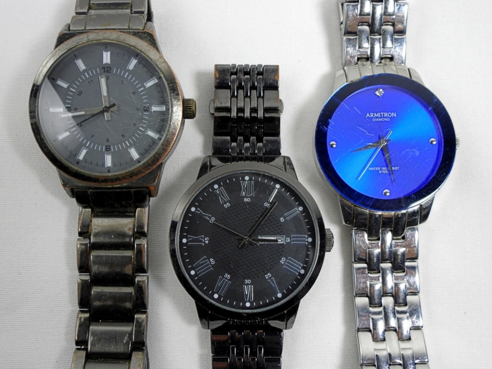 3 ASSORTED MENS CHUNKY STYLE WATCH LOT. WATCHES ARE UNTESTED/BRANDS UNVERIFIED. ARMITRON AND MORE!
