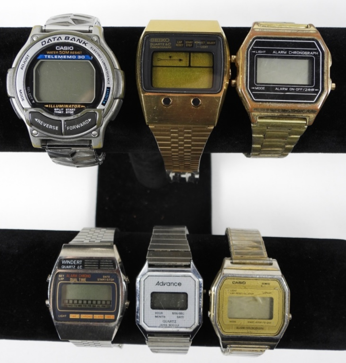 6 ASSORTED (GOLD/SILVER TONE) MENS DIGITAL/LED WATCHES. ALL WATCHES ARE UNTESTED: MAY NEED PARTS/REPAIR IN ORDER TO WORK. BRANDS UNVERIFIED.