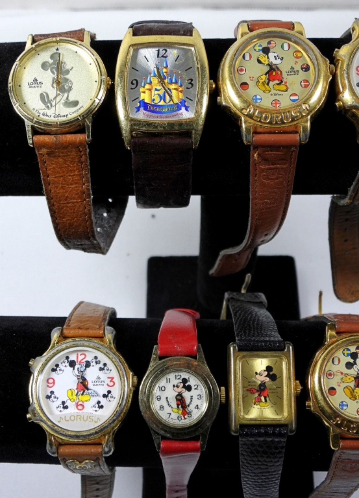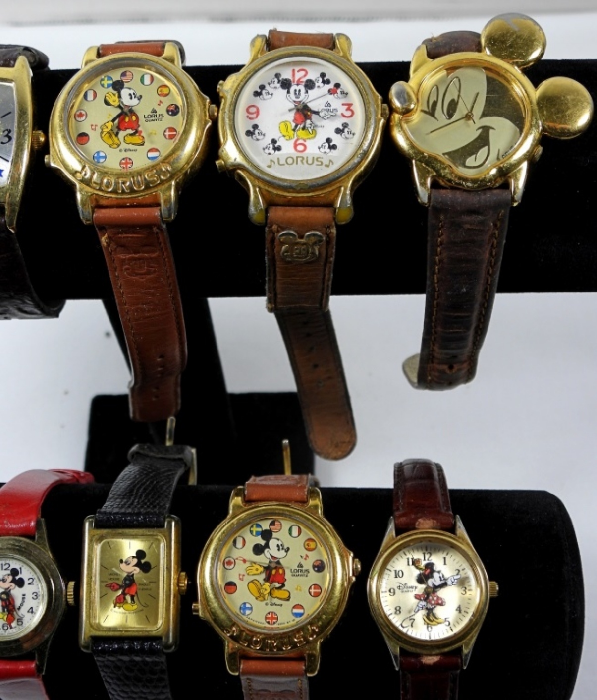 10 ASSORTED DISNEY MICKEY MOUSE WATCH LOT. WATCHES ARE UNTESTED. MAY NEED PARTS OR REPAIR TO WORK.