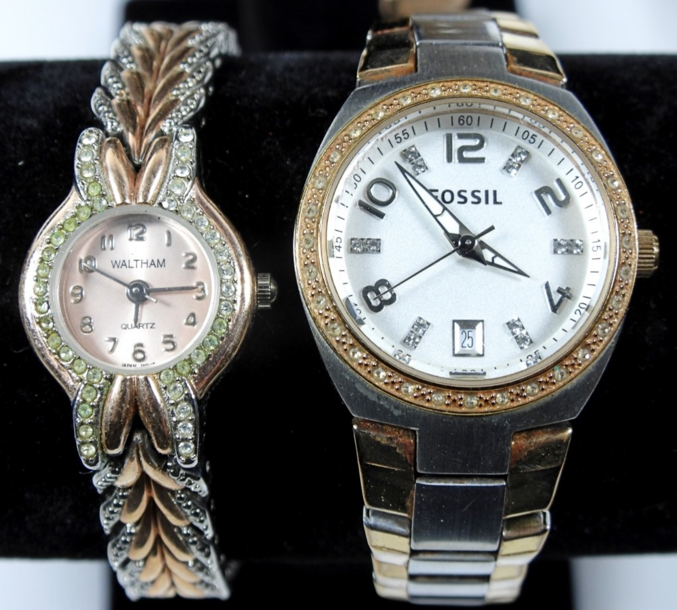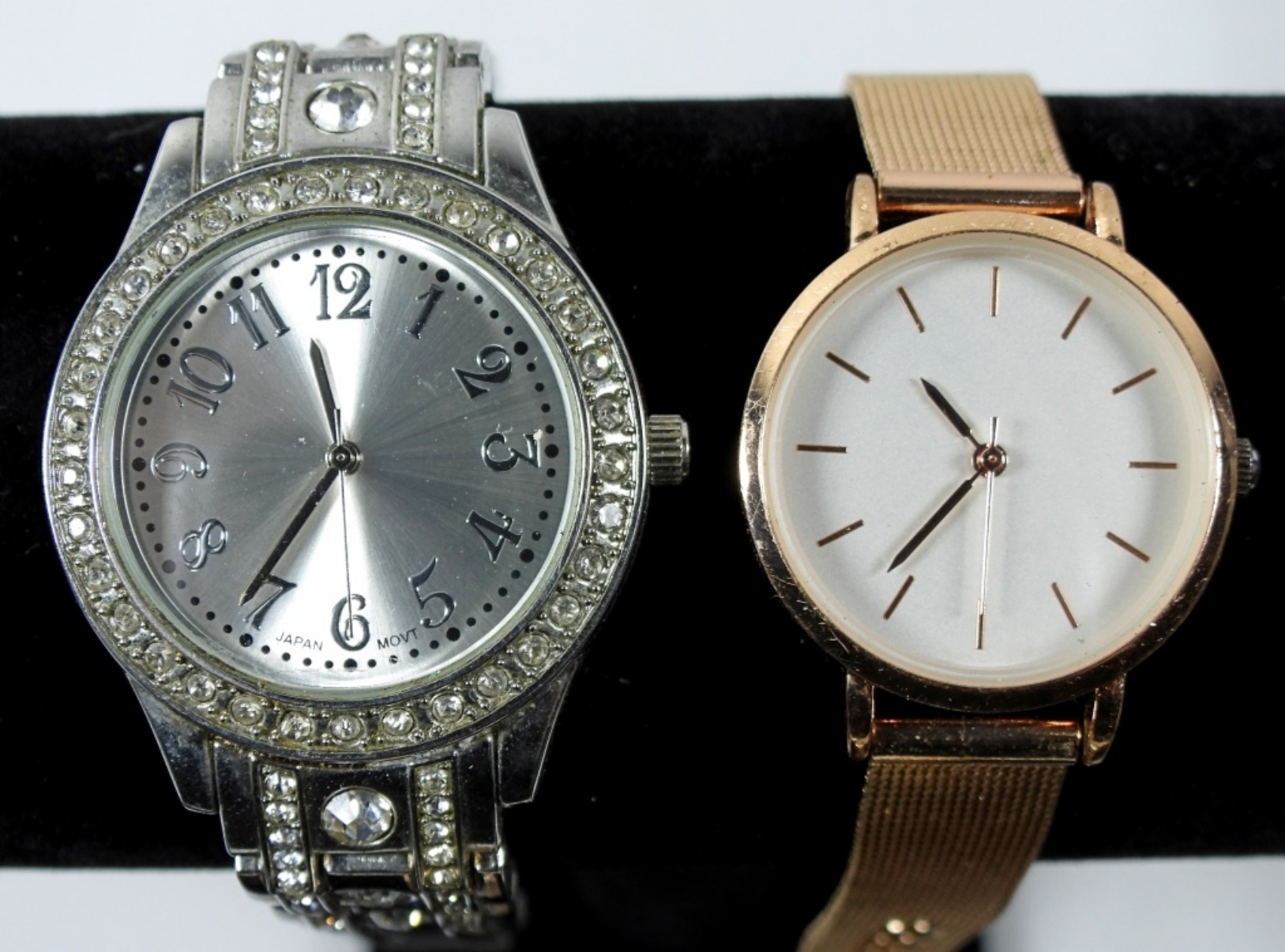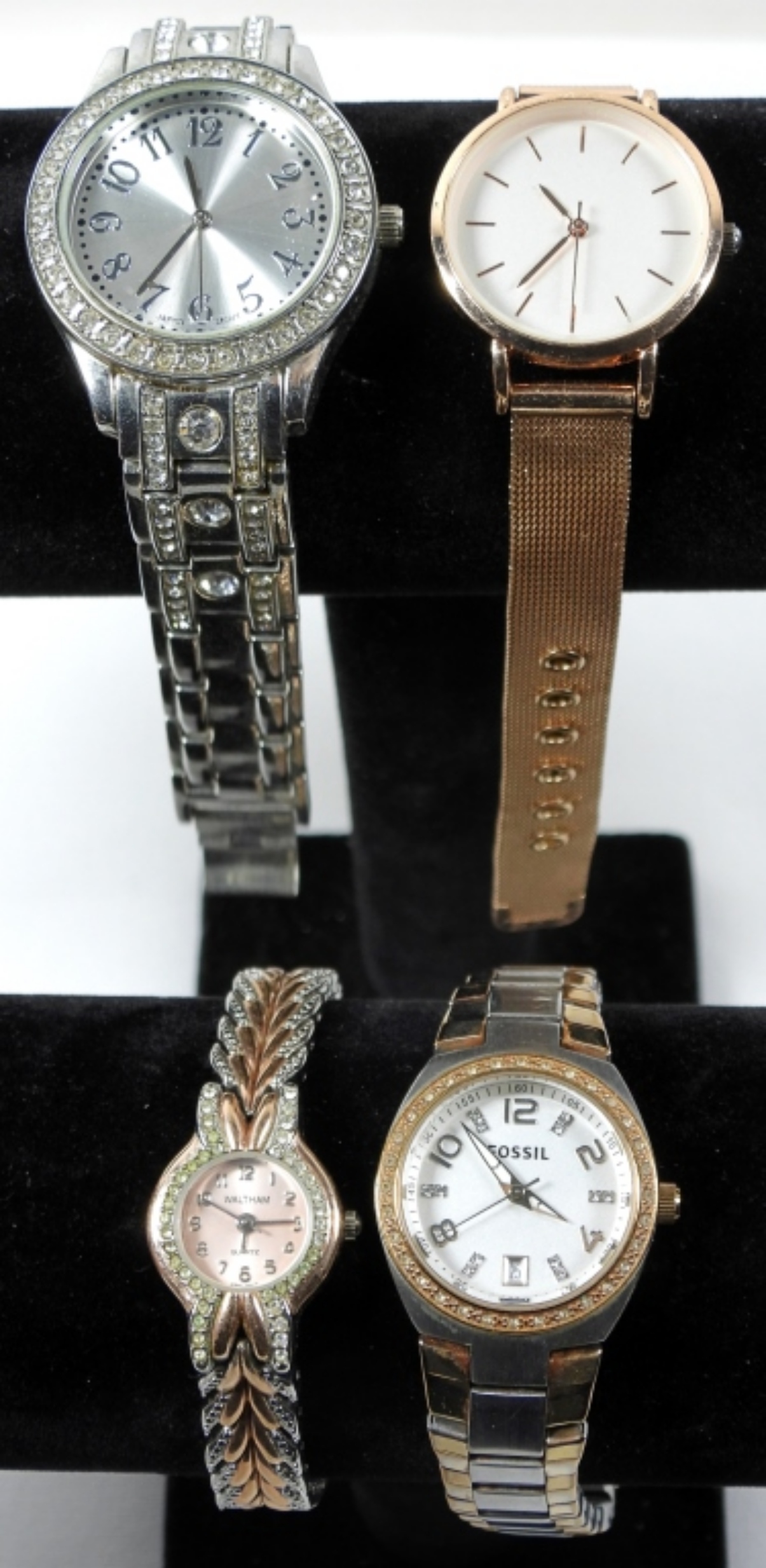 4 PRETTY LADIES ROSE GOLD/SILVER TONE FASHION WATCHES. WATCHES UNTESTED/BRANDS UNVERIFIED. MAY NEED PARTS/REPAIR TO WORK.