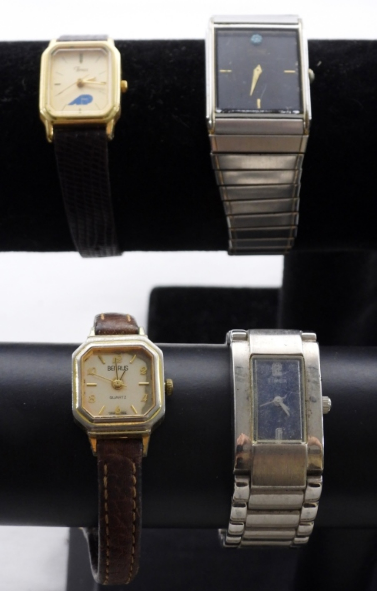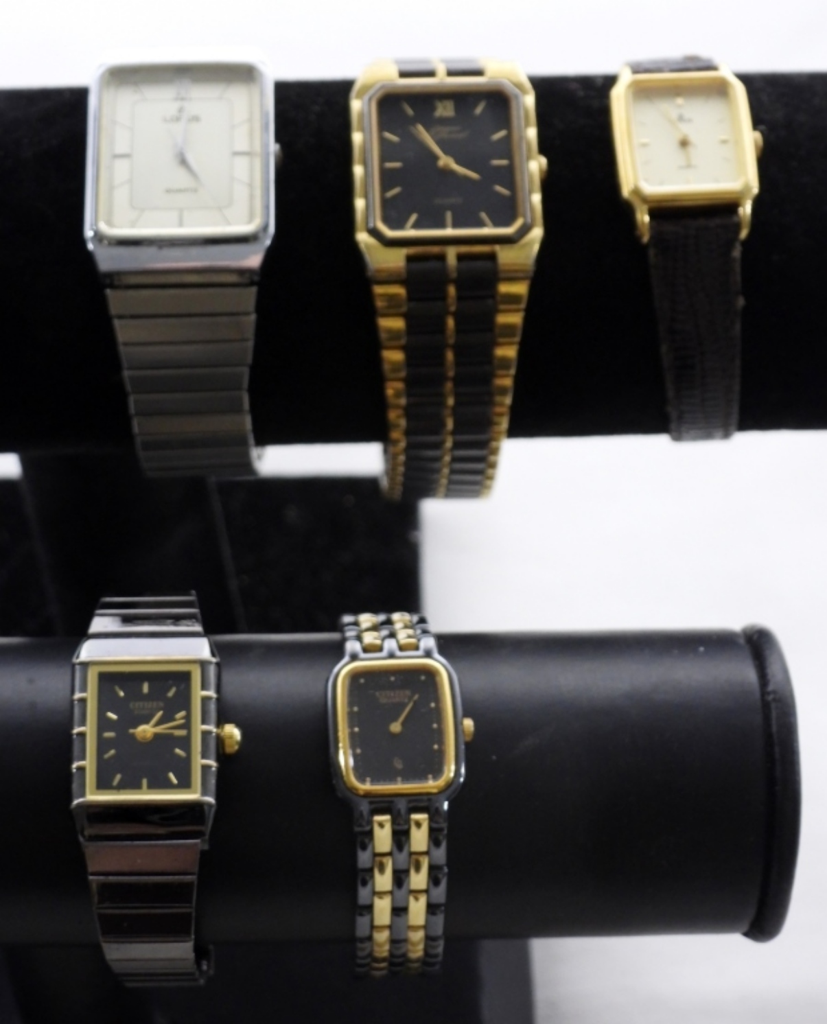 10 MIXED LOT WATCHES- 3- LEATHER BAND WATCHES, 1- GOLD TONED BAND WATCH( THE BAND ON THIS WATCH IS BROKEN MAYBE ABLE TO BE FIXED OR USED FOR REPAIRS), 3- GOLD ACCENTED WATCHES, 3- SILVER TONED WATCHES. BRANDS ARE