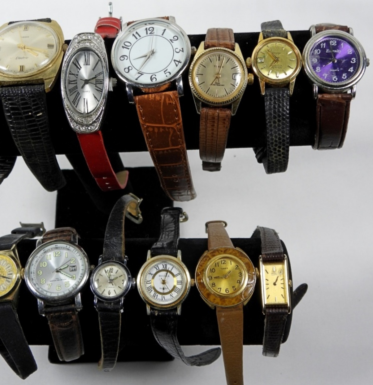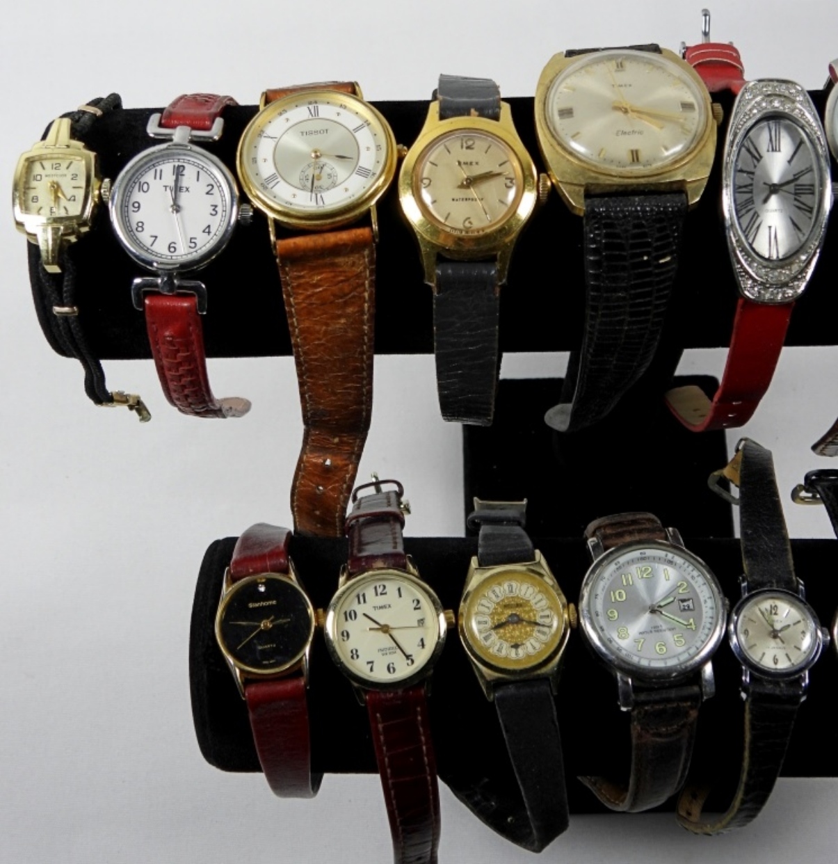 20 ASSORTED LADIES WATCHES IN VARIETY OF BAND COLORS. WATCHES UNTESTED/BRANDS UNVERIFIED.